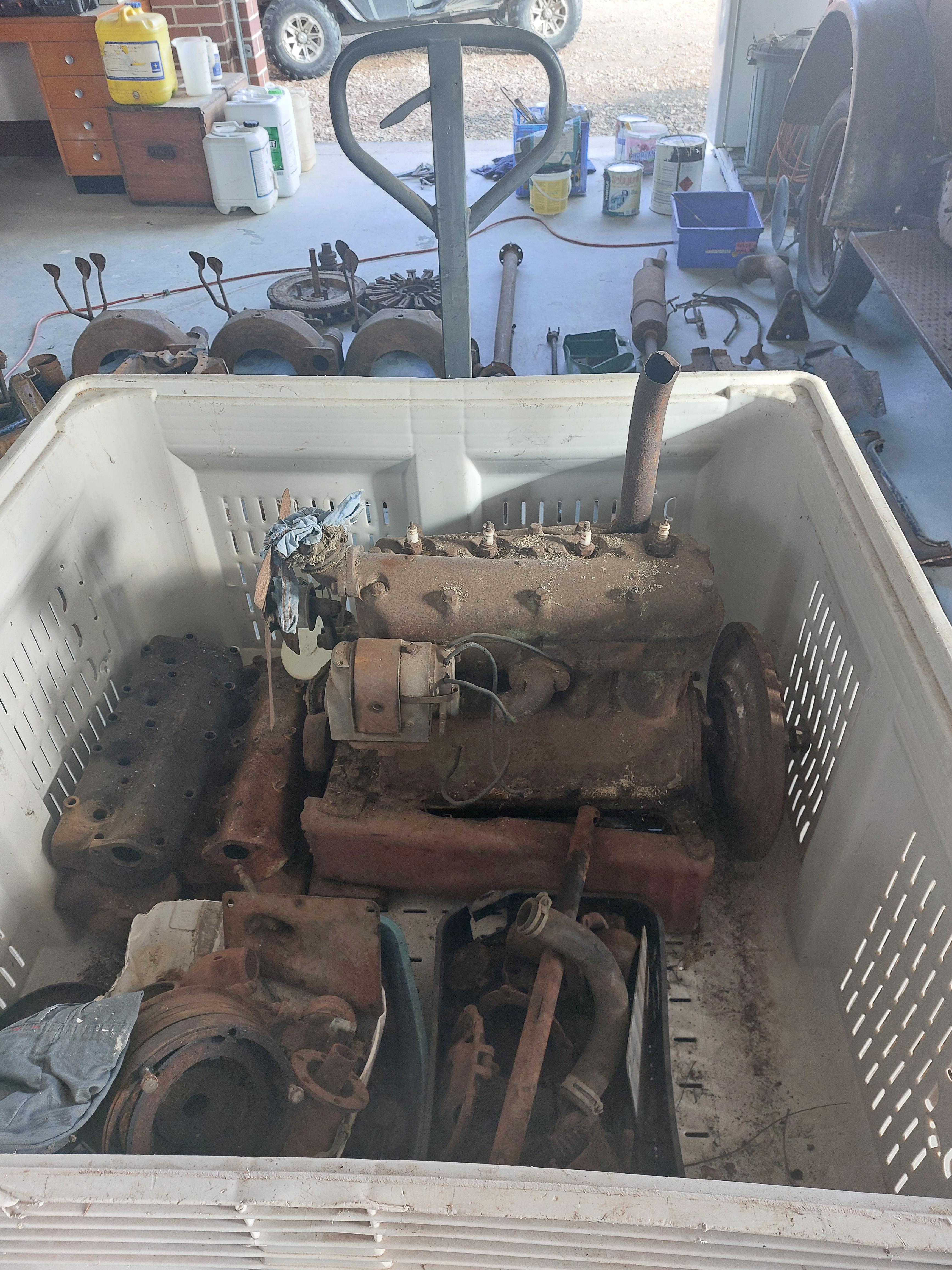 Fully rebuilt going engine + original engine in pieces + many parts including 4 heads, 2 cranks, 3 gear boxes, extra pistons etc.