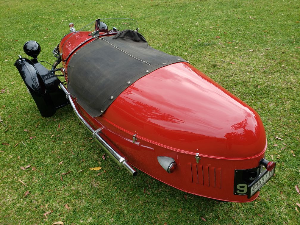1934 Morgan Beetle Back Supersport 3 wheeler. 990 cc V twin water cooled. 3 speed with reverse. Car comes with trailer, ramps, winch. Contact Allan located in Longbeach, Batemans Bay 2536. Club plates.