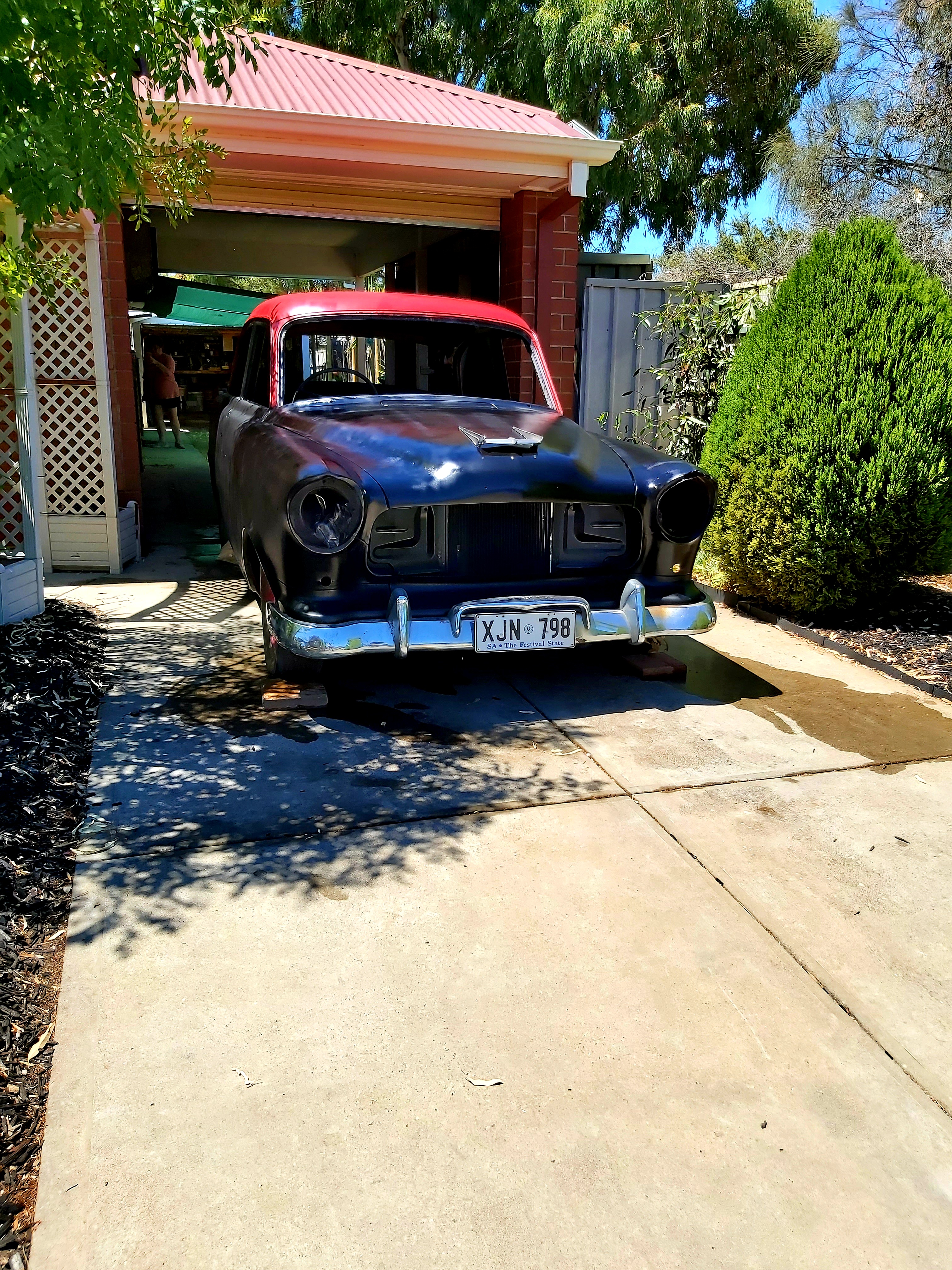 6cyl (132 grey motor) it does turn over with a 3 speed column shift, comes with new and old parts, there is some rust, can send more photos if required, it's painted red and black and has matching interior to put in, there is some work to be done, it can be registered, very regrettable sale due to health issues.