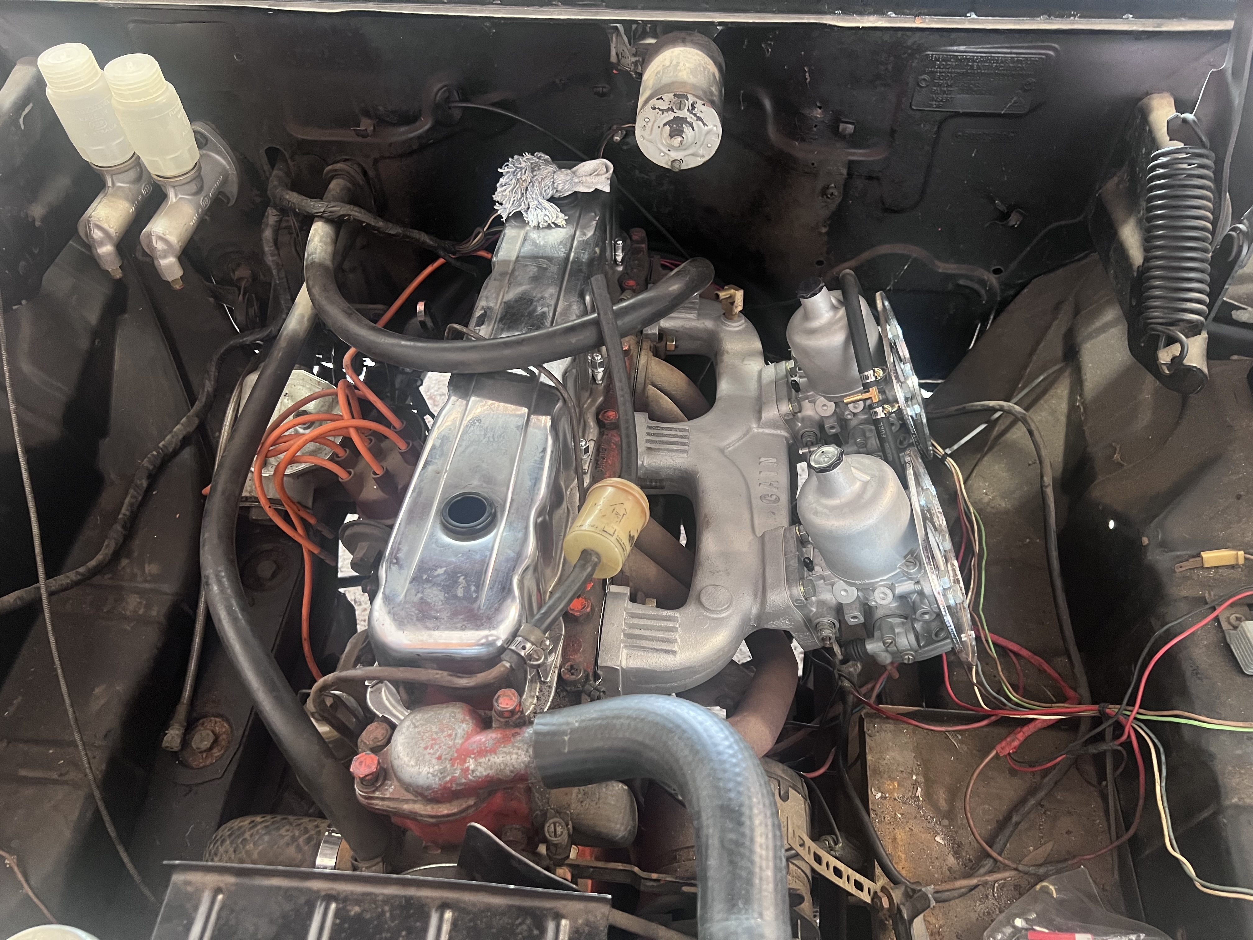 Majority of restoration done. 202 motor, HR front end, extractors and twin SU carbies overhauled by All carb Sandgate, new tail shaft, modified to fit 4 speed floor shift gearbox, Dragway mags, please view the photo of the parts, Too many projects and moving interstate.