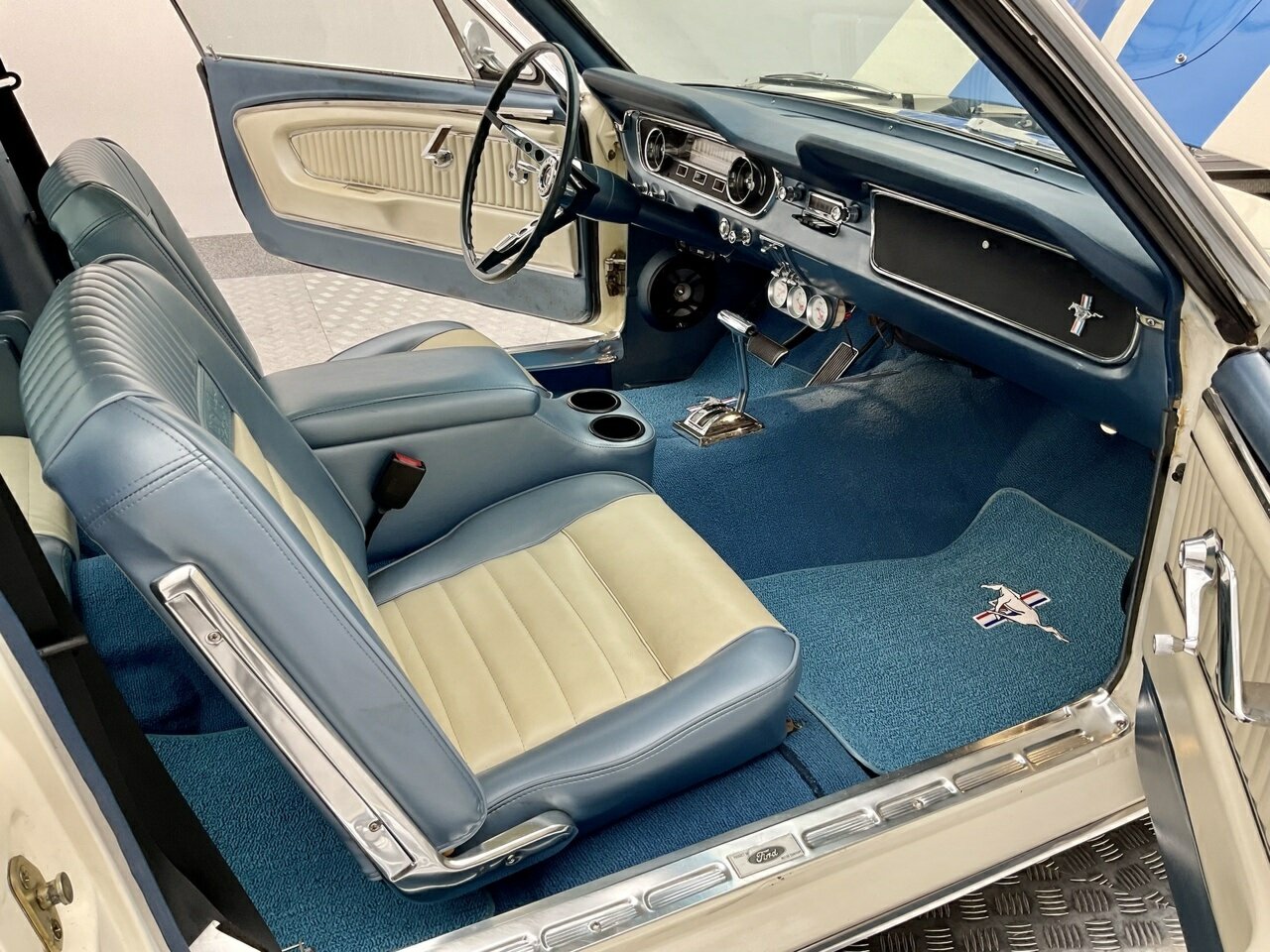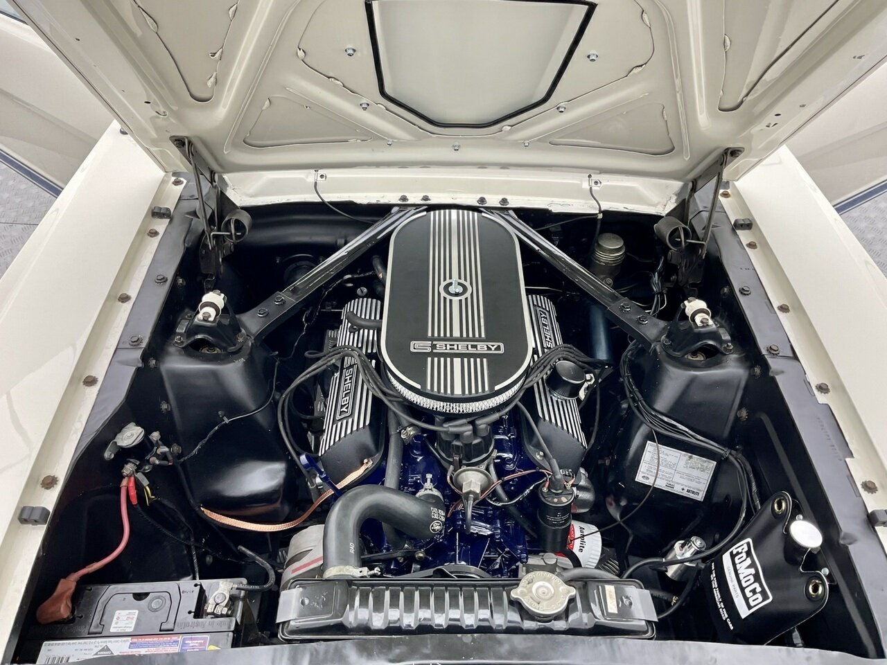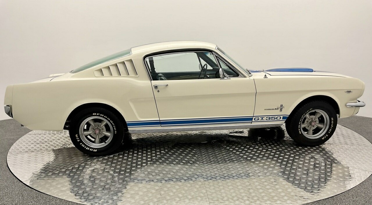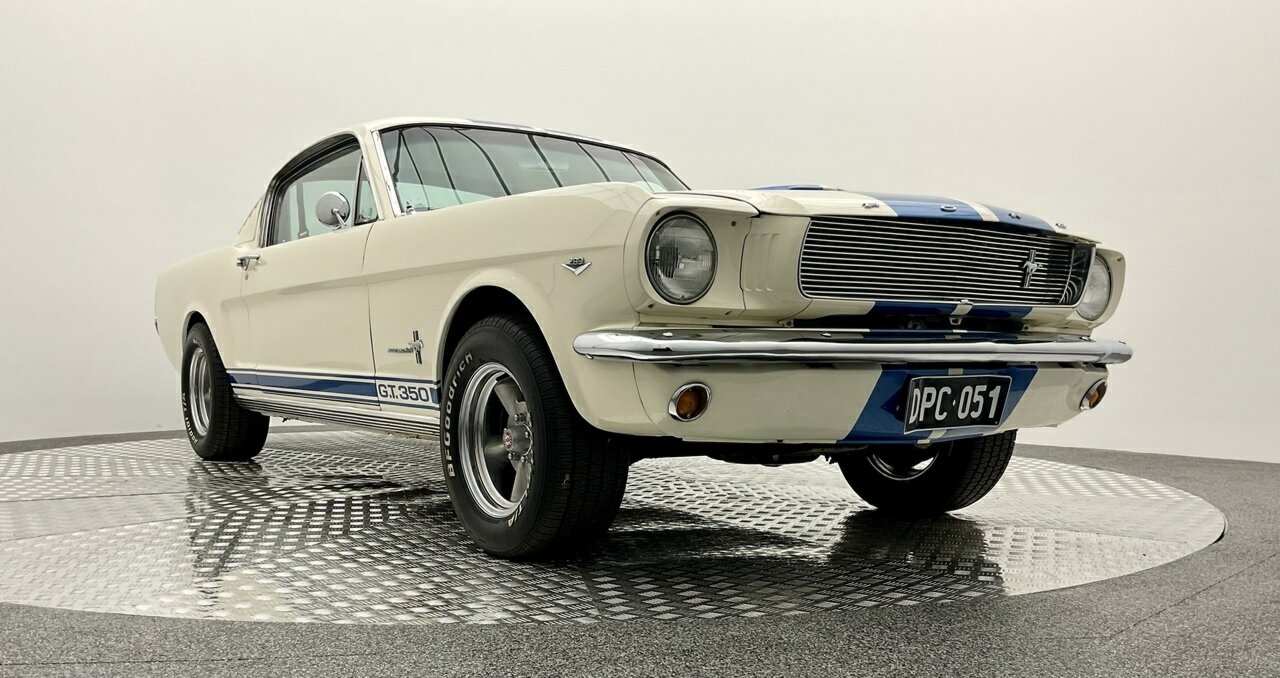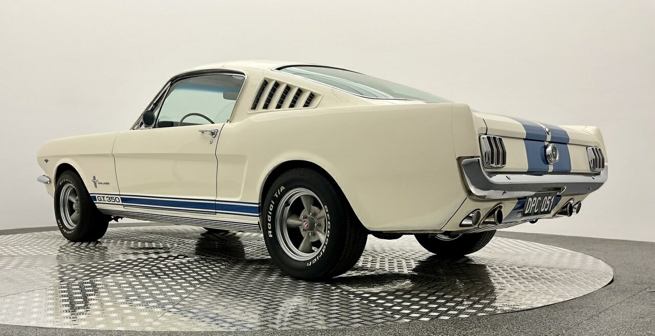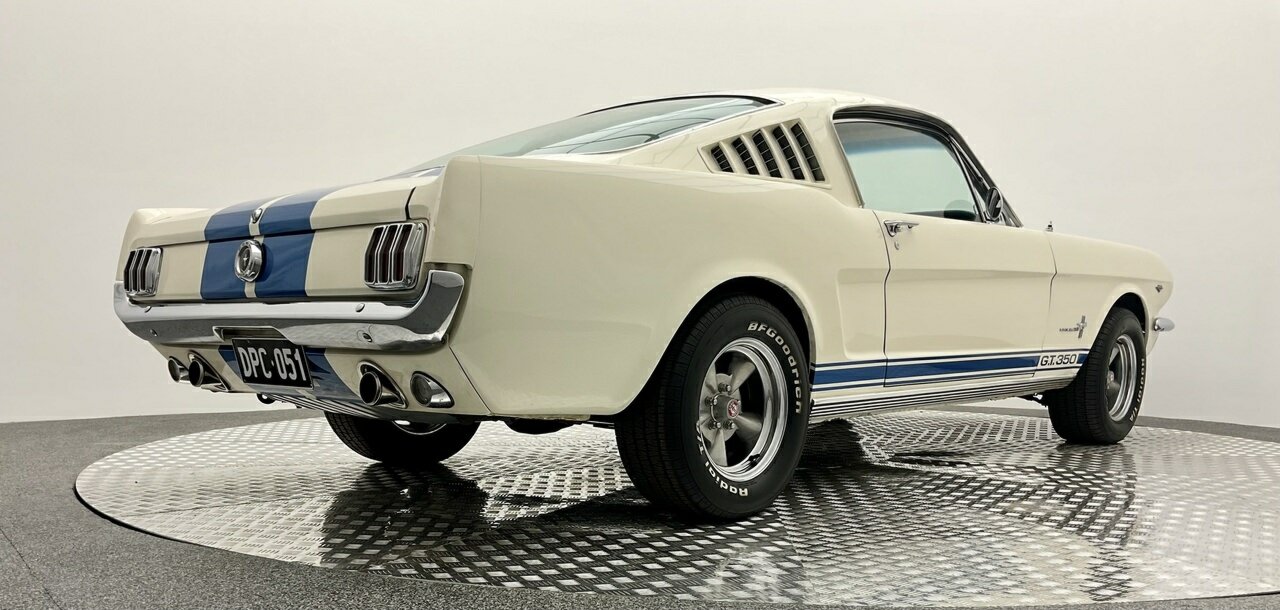 Ford Mustang Fastback 1965 Painted in Wimbledon White, with blue and white luxury pony trim. Equipped with a Ford Windsor 289 all factory matching numbers motor and Automatic transmission, and factory 8 3/4'' differential, accompanying the vehicle is a history file, owners booklet and receipts detailing mechanical work to the engine, brakes and suspension over this period, presented in its original colour combination, this Ford Mustang is in good condition both in the paintwork and exterior with a few minimum touch ups, this Pony is a turn key example and is one for the driving enthusiast. Don’t miss out on this opportunity to own this desirable American classic muscle. Left hand drive, car starts great, sound awesome with the ford rumble and drives great, it would also make a great Shelby (GT 350) replica, with a bonnet scoop, and blue sticker decal on it, it would not take much to change it. Also, the opportunity to add 1/4 vent glass, there are kits available in the USA. This pony is in very original condition, and a rust-free body.