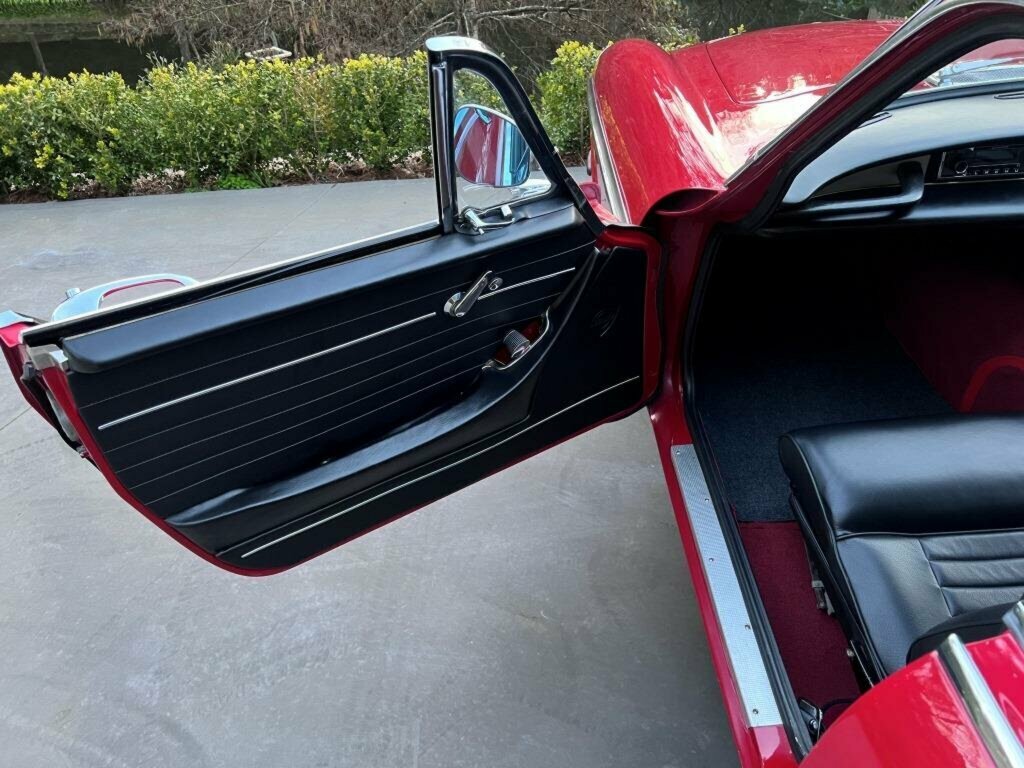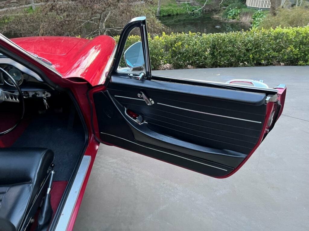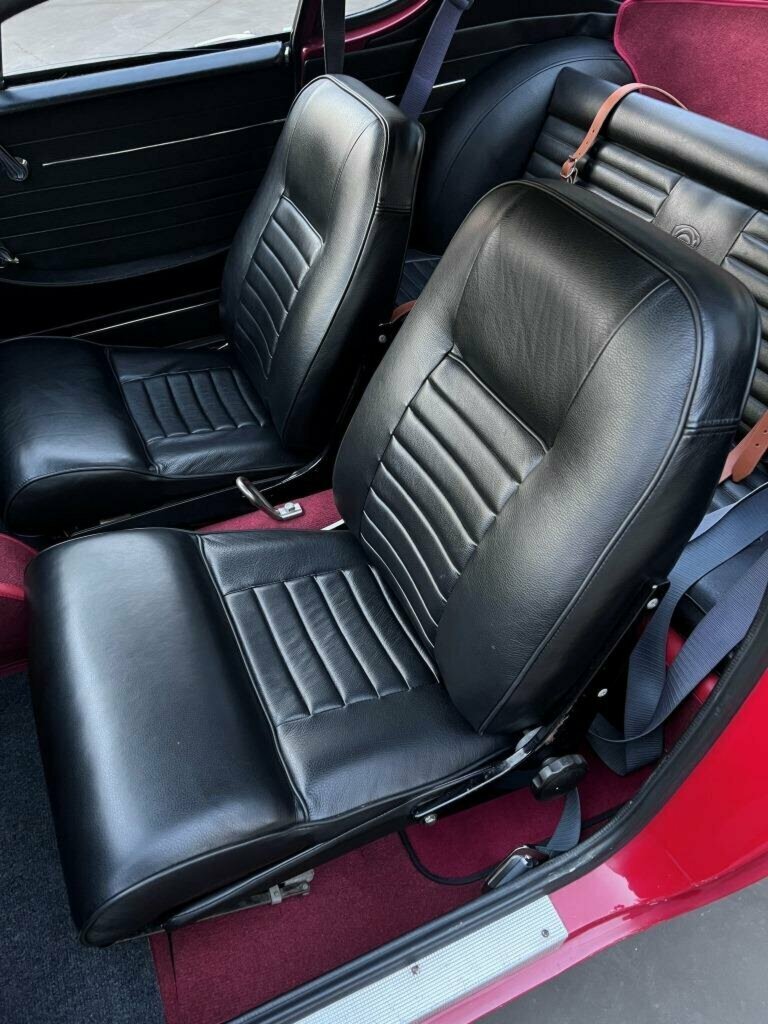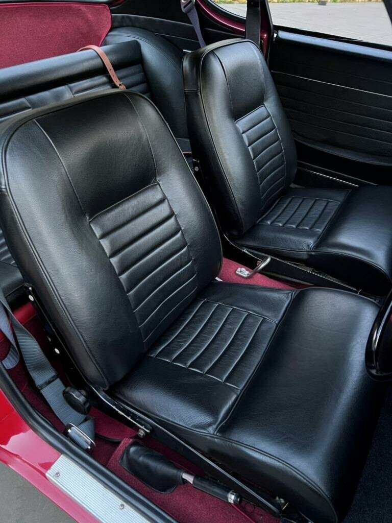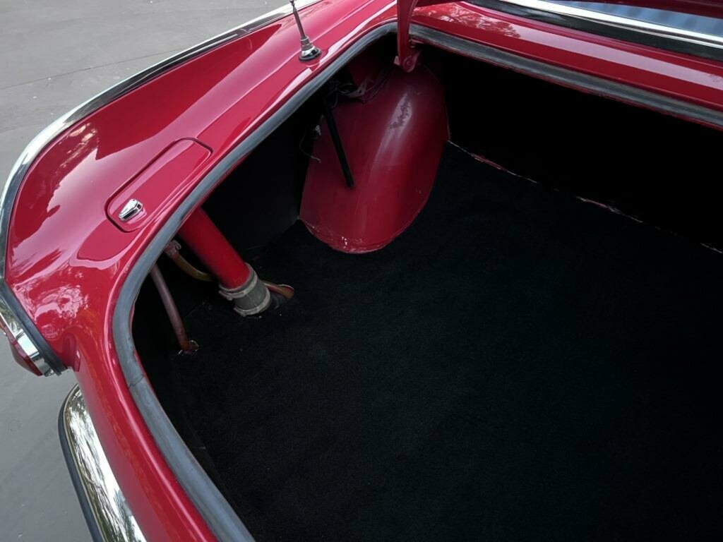 This car was repainted in 2022 and is finished in sparkling Red paint with new chrome bumpers, taillight bezels, license plate bezel, door handles, side mirrors and boot handle.