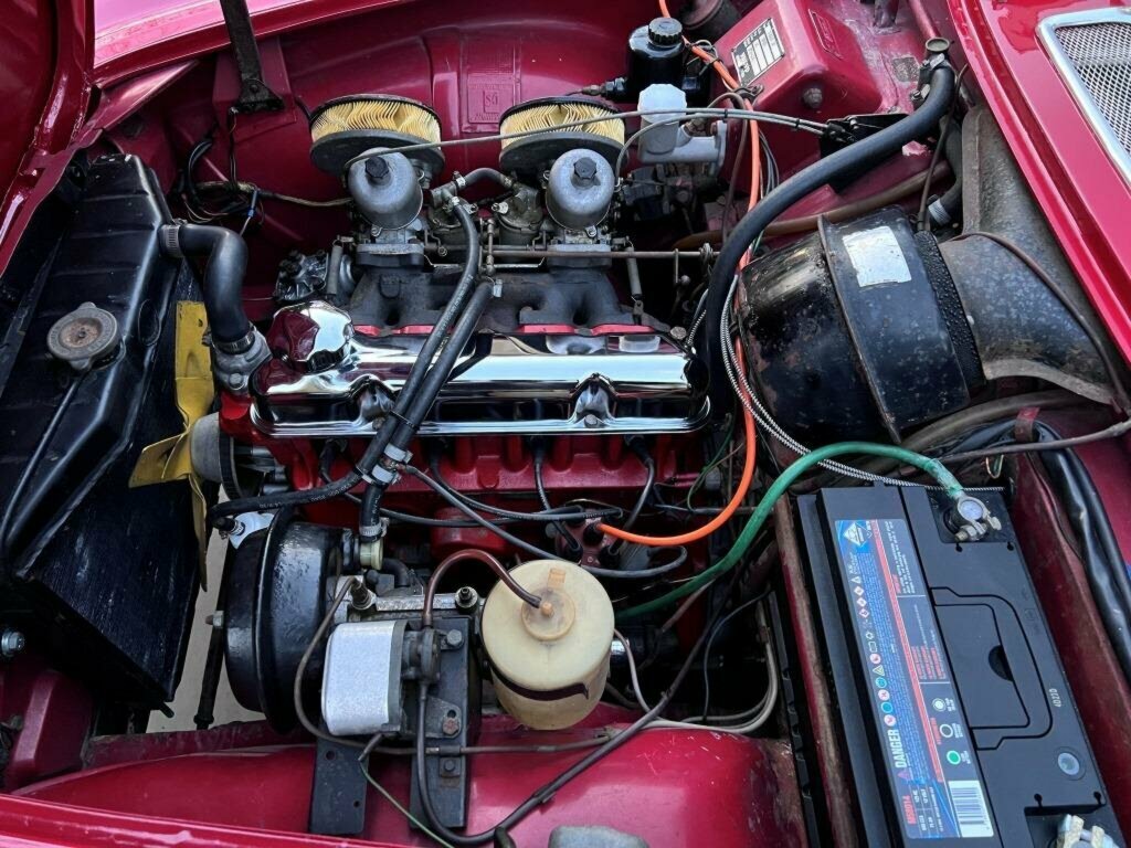 Powered by its original 1.8 litre 4-cylinder engine, this is the dual carburettor, high compression model coupled to a four-speed gearbox with overdrive. The engine fires with use of the manual choke and revs through the range with ease. The car’s gear change is quick and effortless and the overdrive is welcome on the highway.