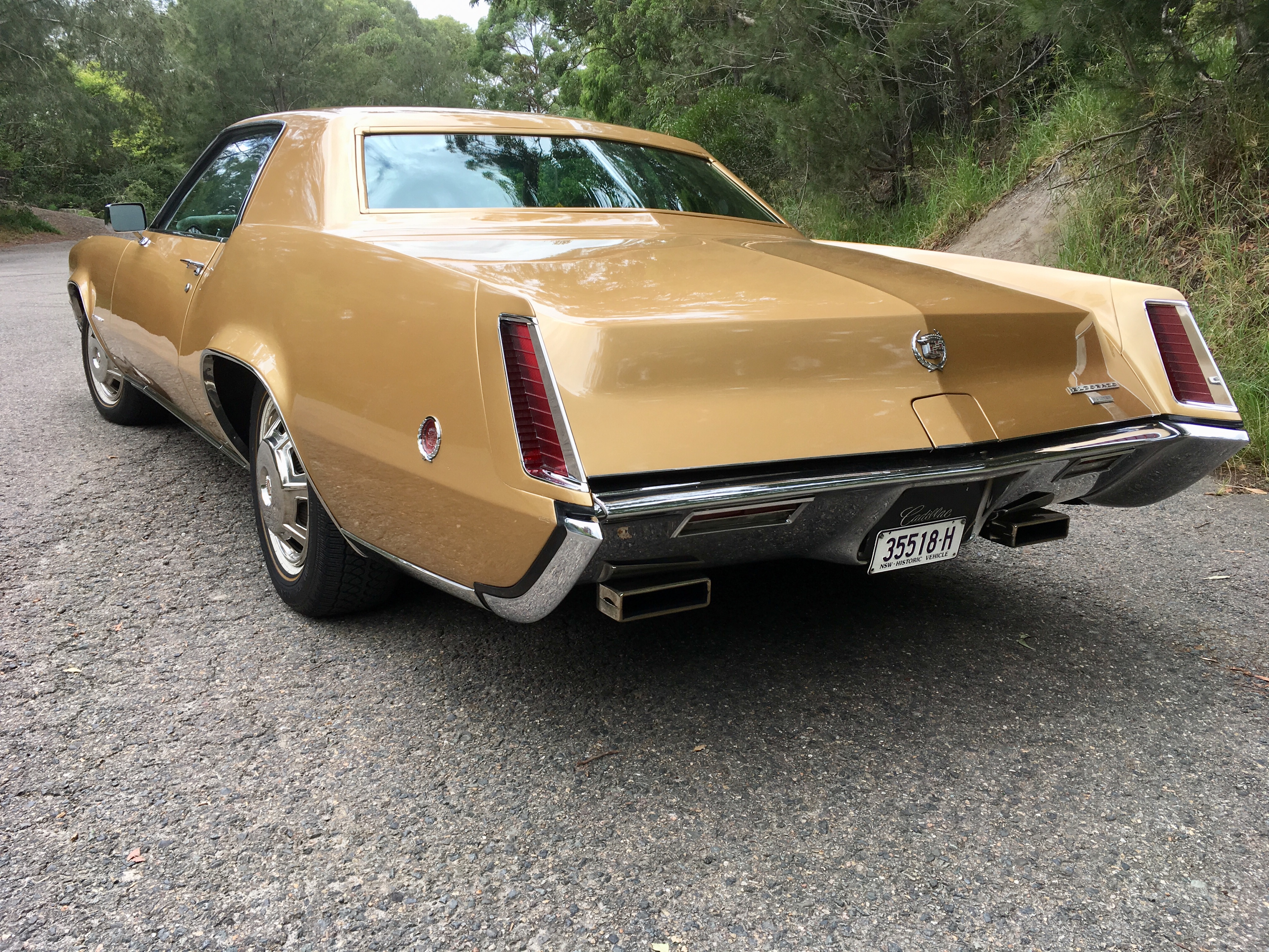This beautiful and stylish 1968 Cadillac Eldorado brings luxury and prestige together. This was the most advanced car ever built by Cadillac when released in 1968, with front drive, 472 ci engine, Turbo-Hydramatic automatic transmission, variable ratio power steering, cold automatic climate control, power windows, power seat, power antenna, power trunk release, automatic park brake release, automatic on/off headlamps, tilt/telescopic steering wheel. Working clock (quartz). In Topaz Gold Firemist with complimenting brocade interior as original, and genuine timber appliqués. All stainless and chrome refinished to show standard. Same owner since 1989, this car is apart of a small collection, used sparingly and always garaged. Travelled approximately 15,000 miles since full engine rebuild. All other mechanicals replaced or renewed at that time. New carburetor. The car has since been meticulously maintained and serviced regardless of cost. It comes with Owners’ Handbook, Brochure, Shop Manuals, comprehensive service history records, a fitted California Car Cover, and brand new American Vogue Tires with sculpted whitewalls and gold line, 235 x 70 x 15. It represents great value at $34,500. Registration expires in February 2020.