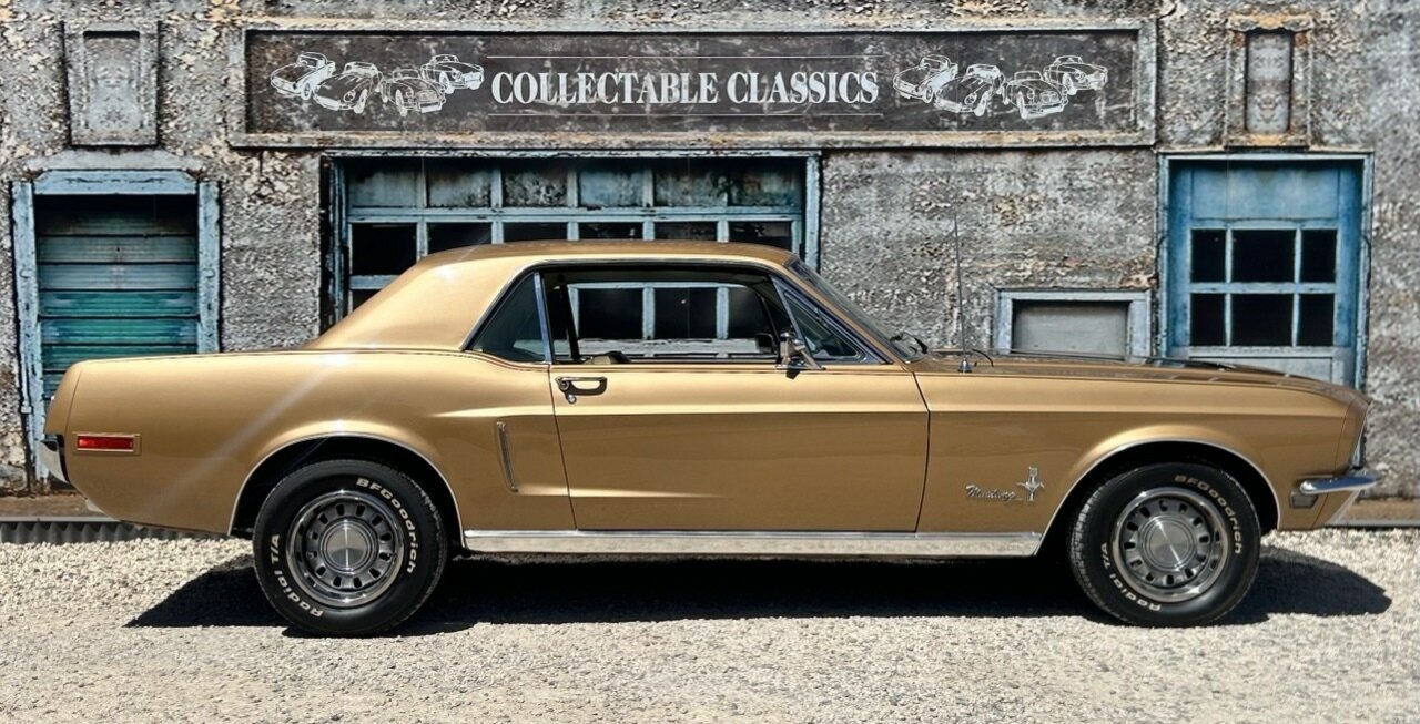 Just arrived - This 1968 Ford Mustang is a beautifully restored piece of American Muscle. Built out of the Los Angeles plant, the Mustang came off the line on the 28th of December 1968. It made its way to Australia in 2005 and was professionally converted to RHD. The original 289ci V8 was upgraded to a 302ci (4.9L) V8, as was also available at the time of sale, and the car maintained its 3-speed 'C-4' T-bar automatic transmission. The original Sunlit Gold paint was resprayed approximately 20 years ago, which shows off the body lines of this vehicle beautifully and still looks fantastic to this day. The Light Nugget Gold interior saw some attention too, now fitted with a modern radio and speaker system. Equipped with power steering, the Mustang is a pleasure to drive. There is room for passengers in the back and plenty of storage space in the boot. This gorgeous Mustang comes with a file of paperwork documenting its life since it entered the country with what work has been done, as well as spare keys. This is a wonderful American Muscle car with all the fruits at an affordable price, all done and ready to go.
