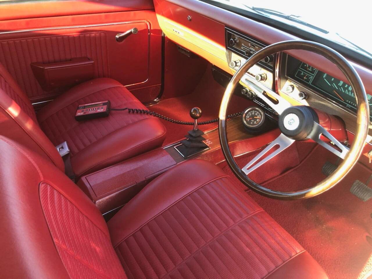 Ermine white Goya red trim 383 Chev engine tko 600 5 speed transmission Rod tech front end 3:5 31 spline 9” diff 4 piston Harrop brakes front and rear Vintage air conditioning