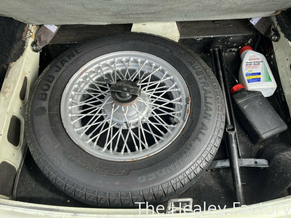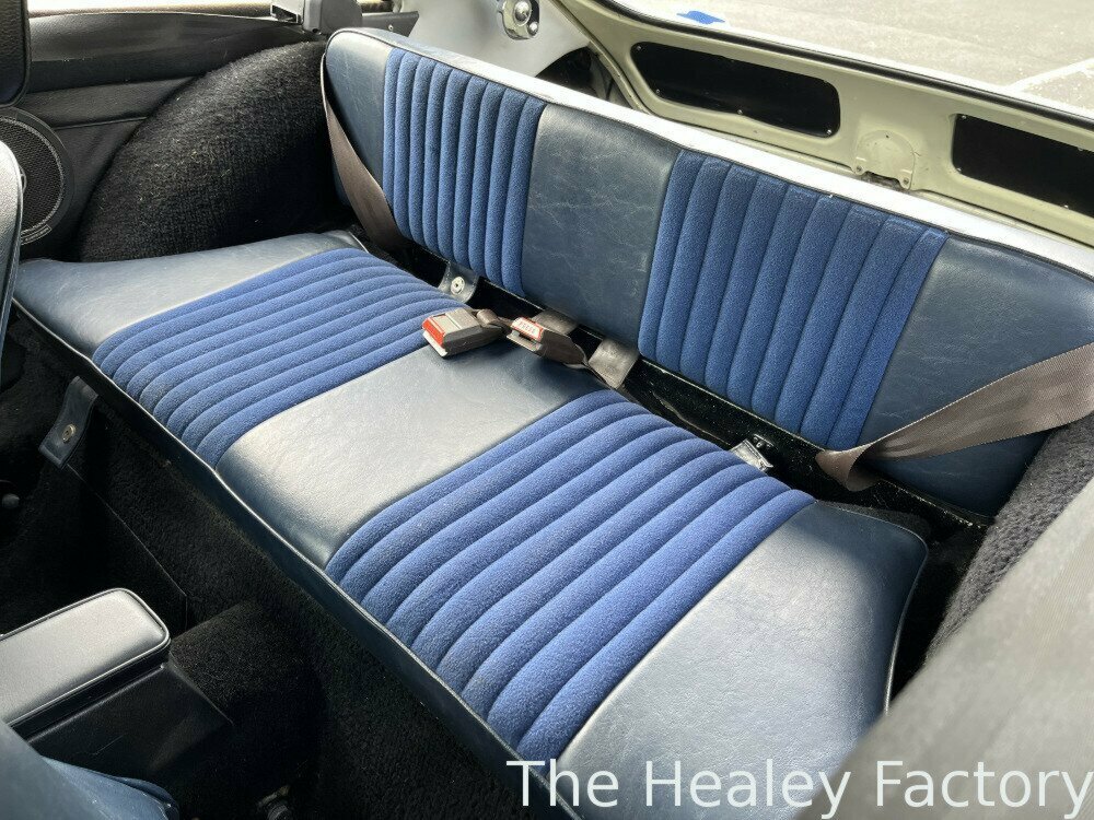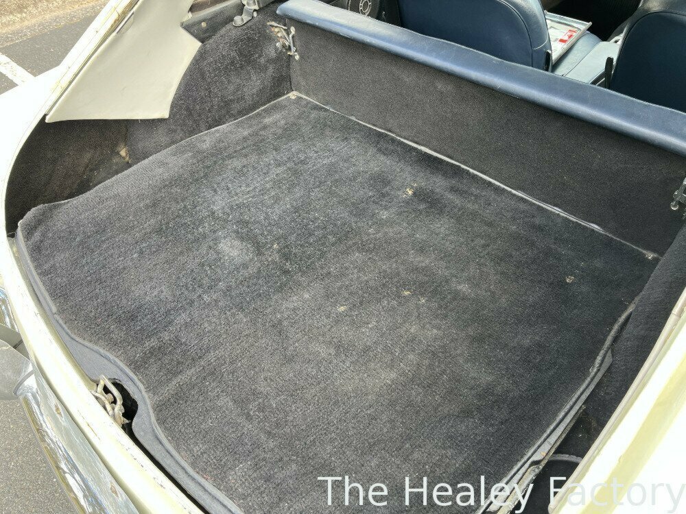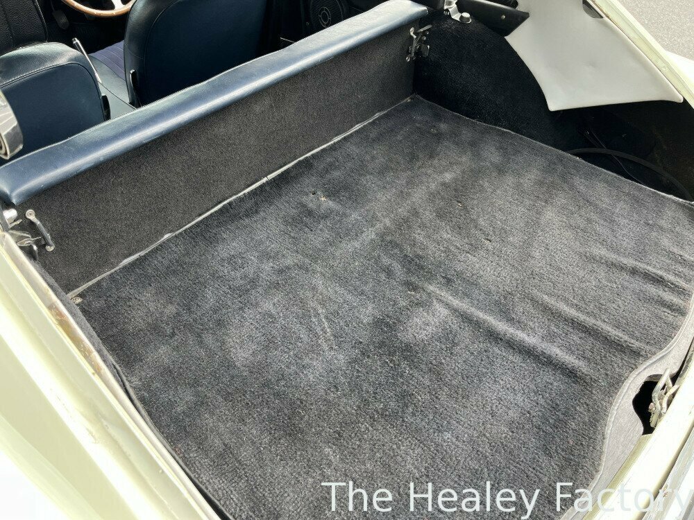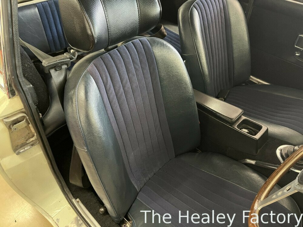 The ‘Ivory’ coachwork of this MGB GT is set off by its sparkling chrome wire wheels complemented by the gleaming brightwork. The Blue interior features more comfortable, later style, reclining seats with the added safety of head restraints and inertia seatbelts, a period wood-rimmed steering wheel, an optional ‘Smiths’ heater and the added luxury of a ‘Slideaway’ vinyl sunroof.