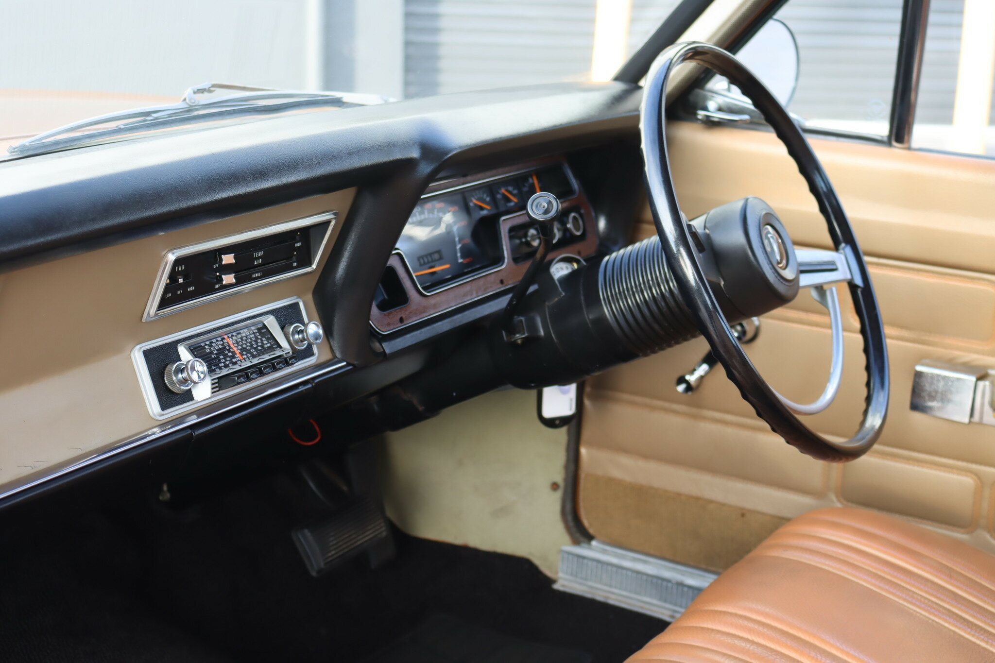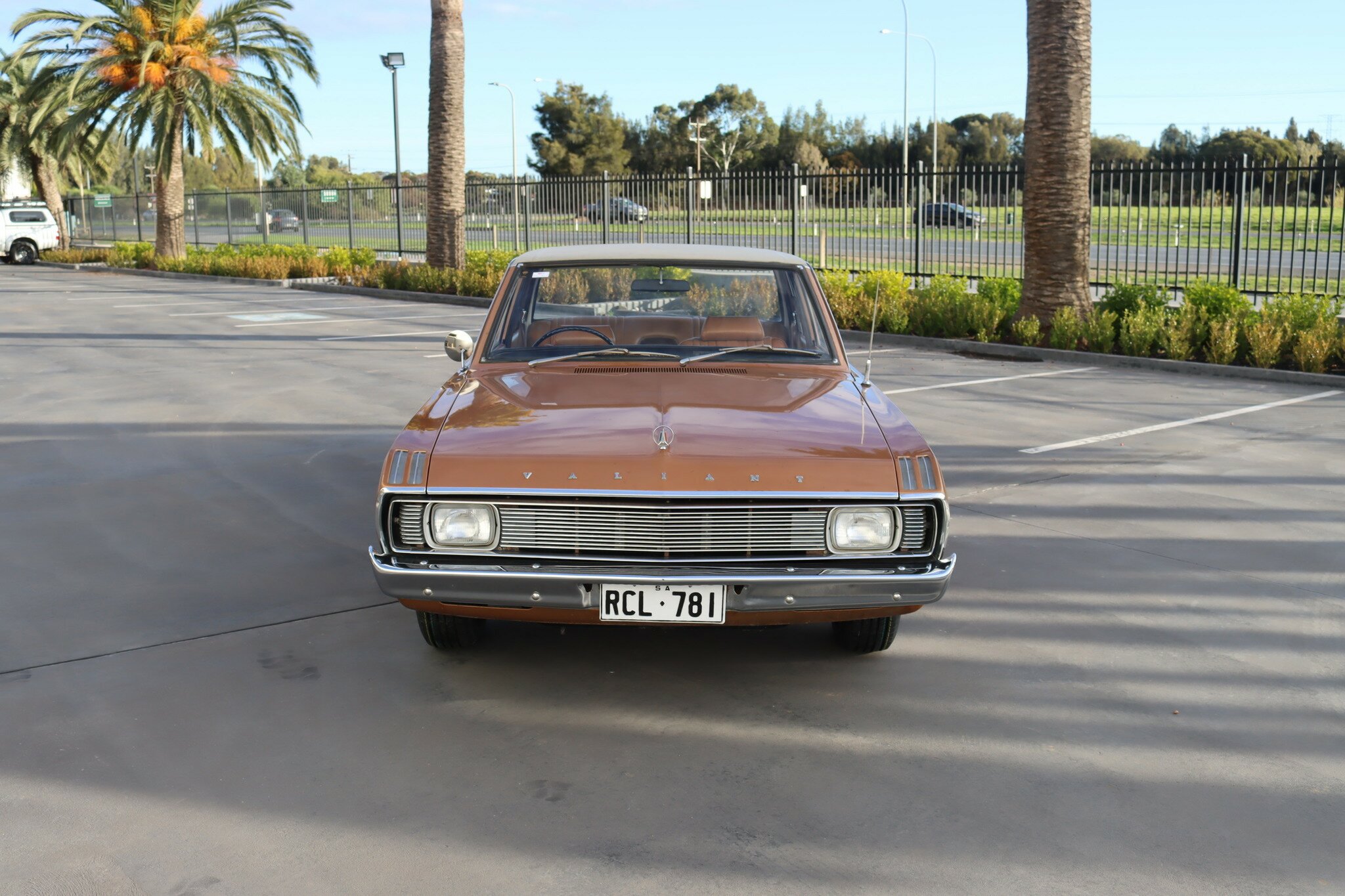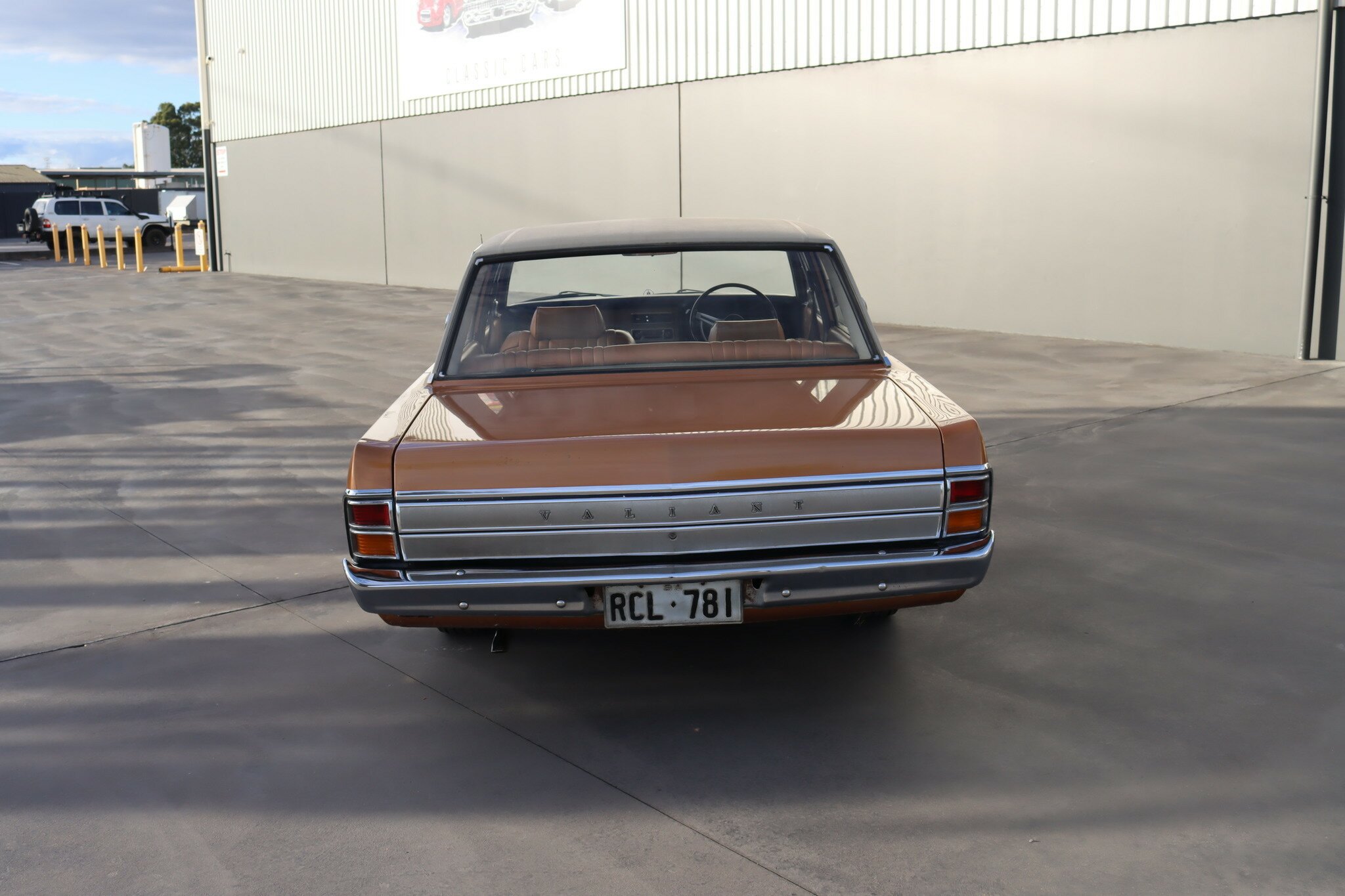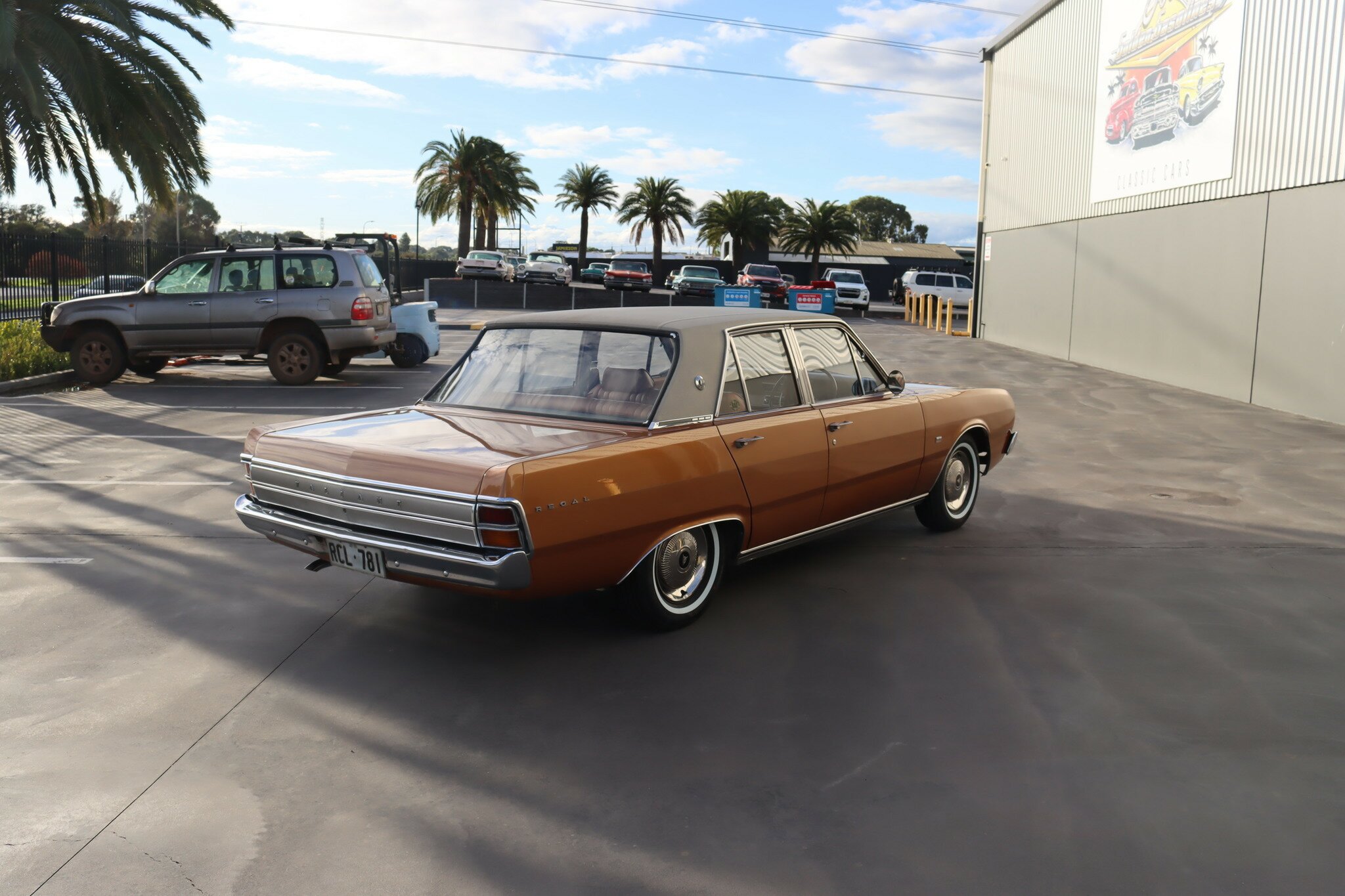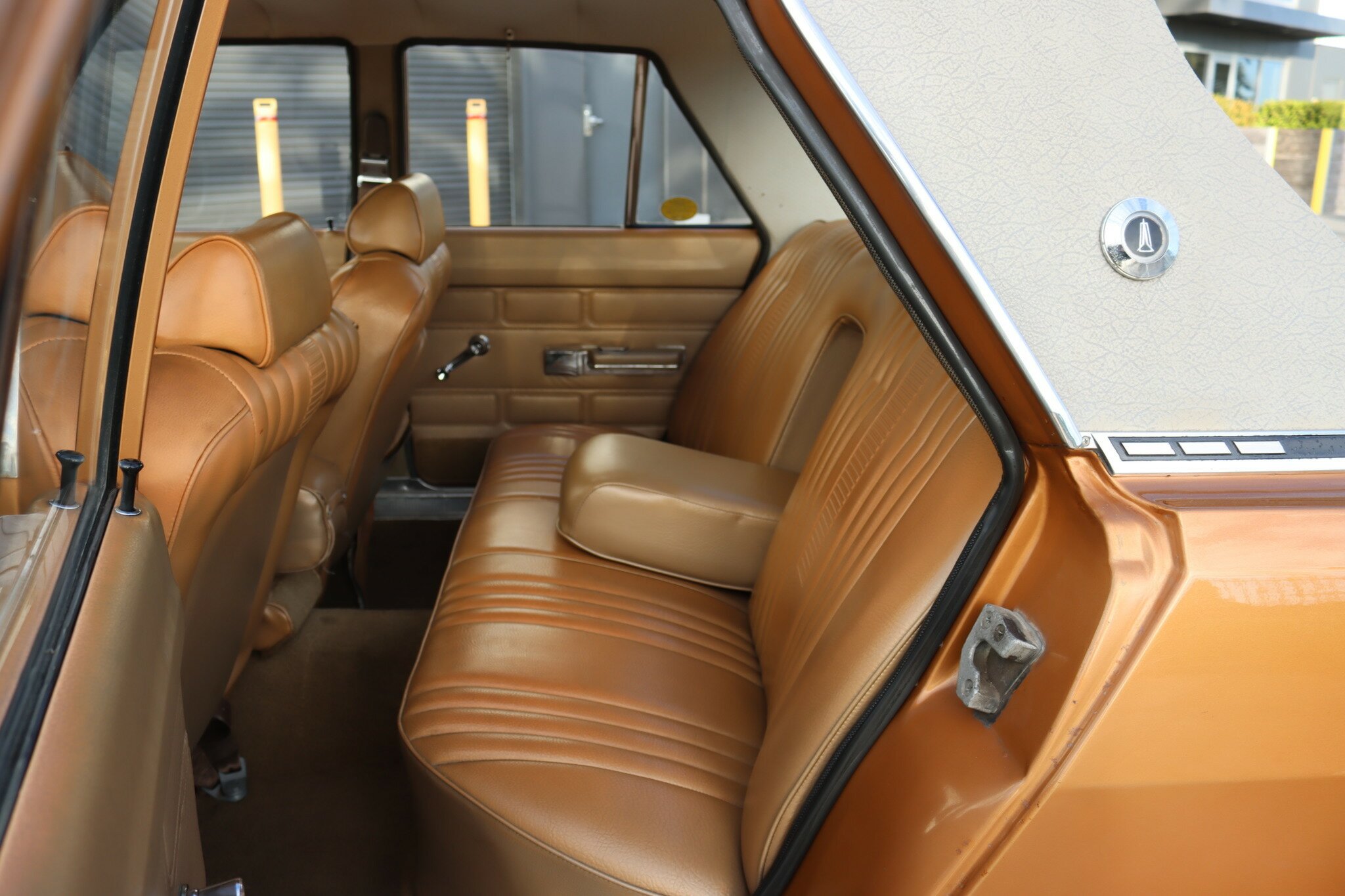 VG Valiant Regal 4 door Sedan. This is an original unrestored low mileage (90,835) car running the 245 Hemi 6cyl engine with 3spd auto trans. Very Good original condition with no rust. Exterior is presented in Spring Gold Metallic Paint in good original condition. Parchment vinyl roof with no tears or rips. Front bucket seats with fold down arm rest. Interior is Tan Parchment in good order.