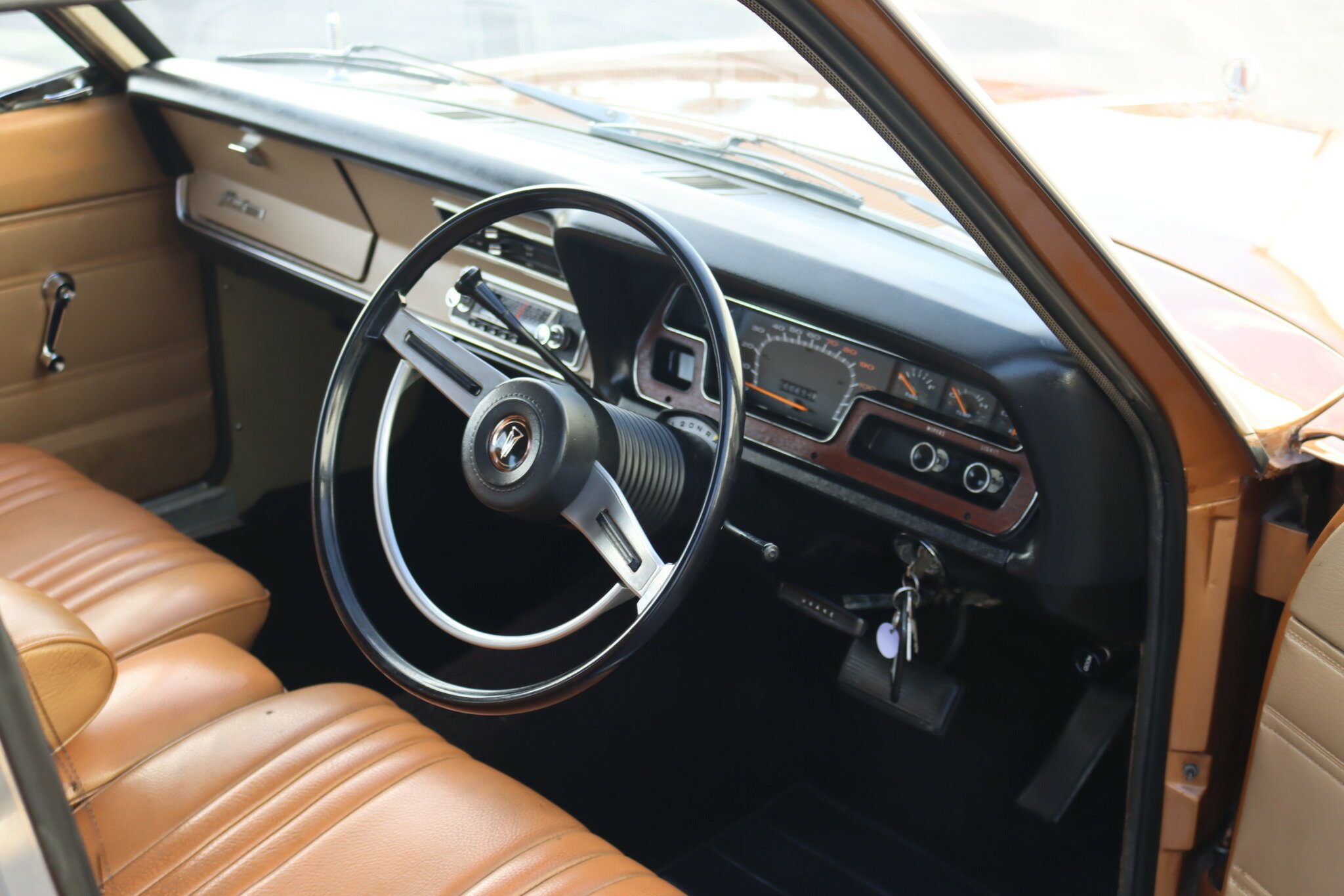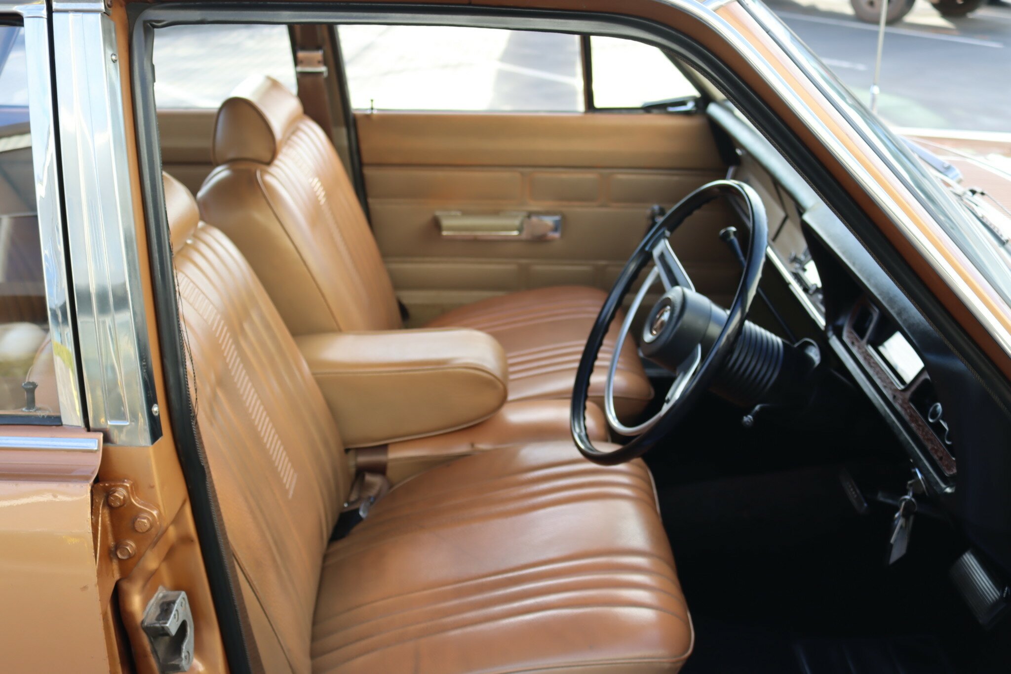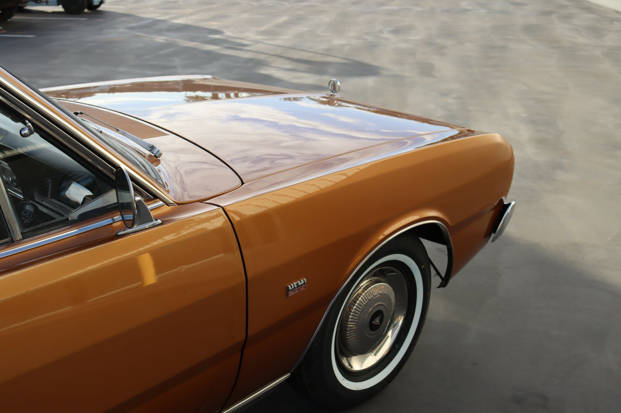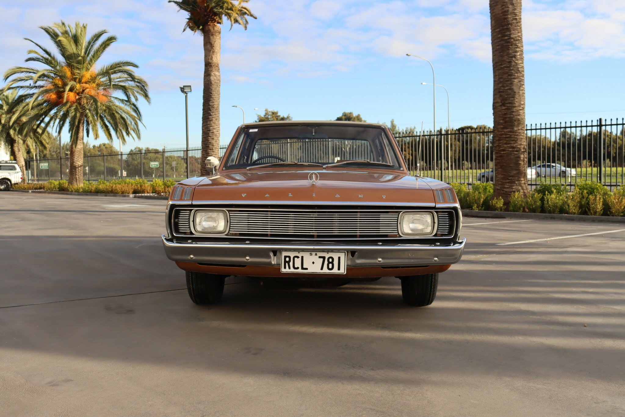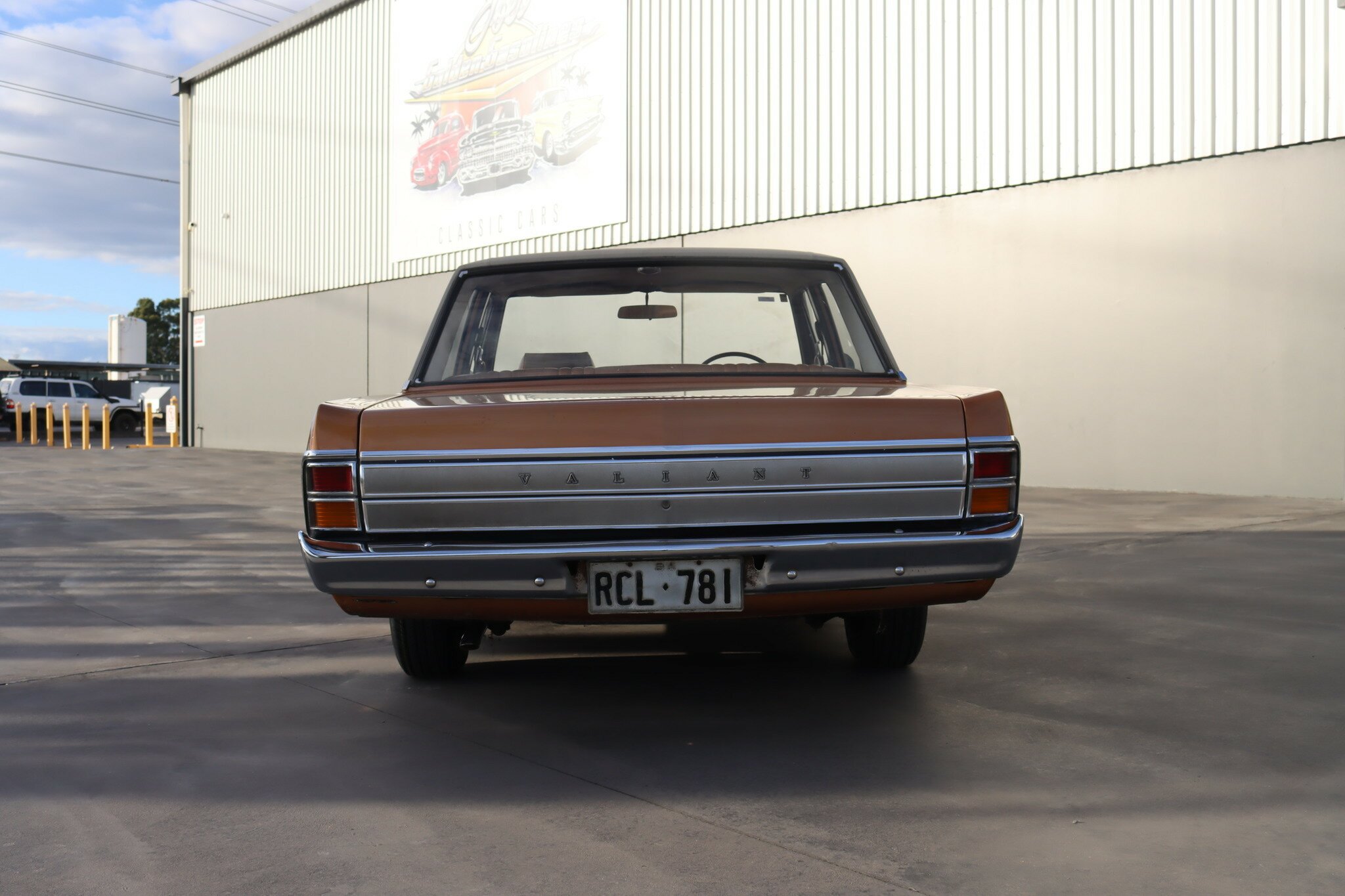 VG Valiant Regal 4 door Sedan. This is an original unrestored low mileage (90,835) car running the 245 Hemi 6cyl engine with 3spd auto trans. Very Good original condition with no rust. Exterior is presented in Spring Gold Metallic Paint in good original condition. Parchment vinyl roof with no tears or rips. Front bucket seats with fold down arm rest. Interior is Tan Parchment in good order.