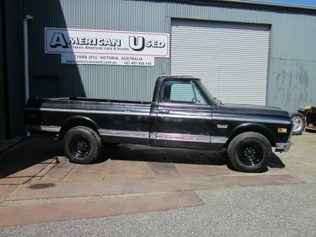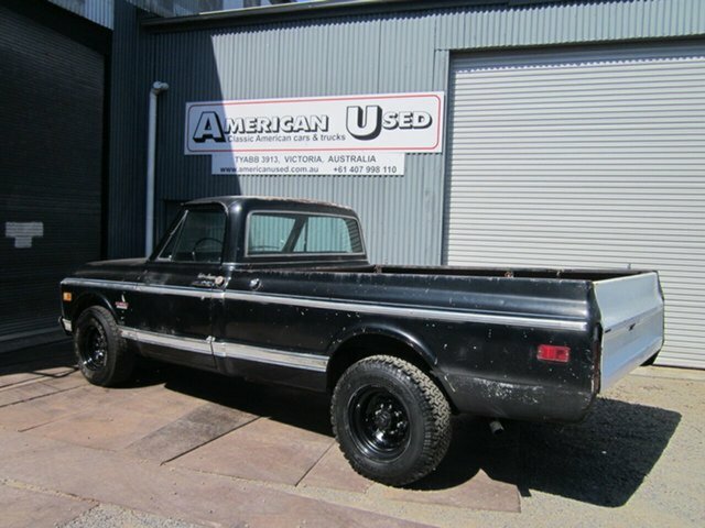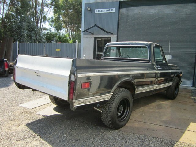 1971 GMC - CHEVROLET C20 FLEETSIDE CAMPER SPECIAL 350 - T400 AUTO PROJECT LHD Decent old truck from Sacramento California panel rust issues in both lower cab sills the rest of the cab , chassis and tub are very dry with surface rust only Black paint in poor condition ( not original colour ) holes in door from camper mirrors and some minor dents around body. Fair glass, chrome and stainless ( windscreen and windscreen rubber US) Black trim is fair condition seat will need recover carpets removed to check floors dash in good shape. Disc brake, power steer, Air cond truck . The 350 fires up and runs well auto selects gears new front brake pads, will need rear brakes replaced. Either a good start to a custom truck or just clean her up and drive.