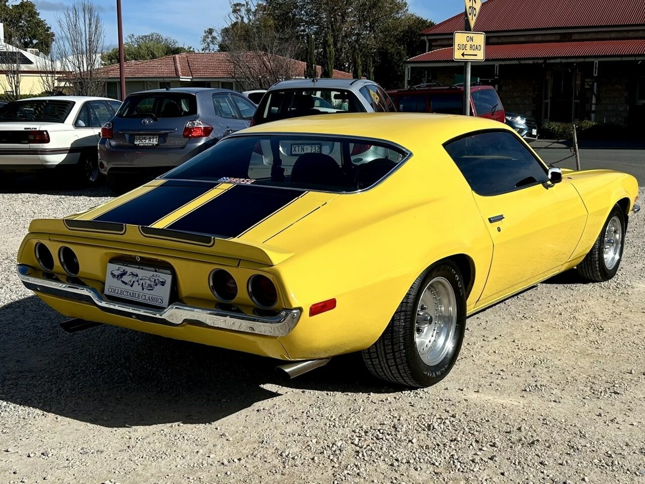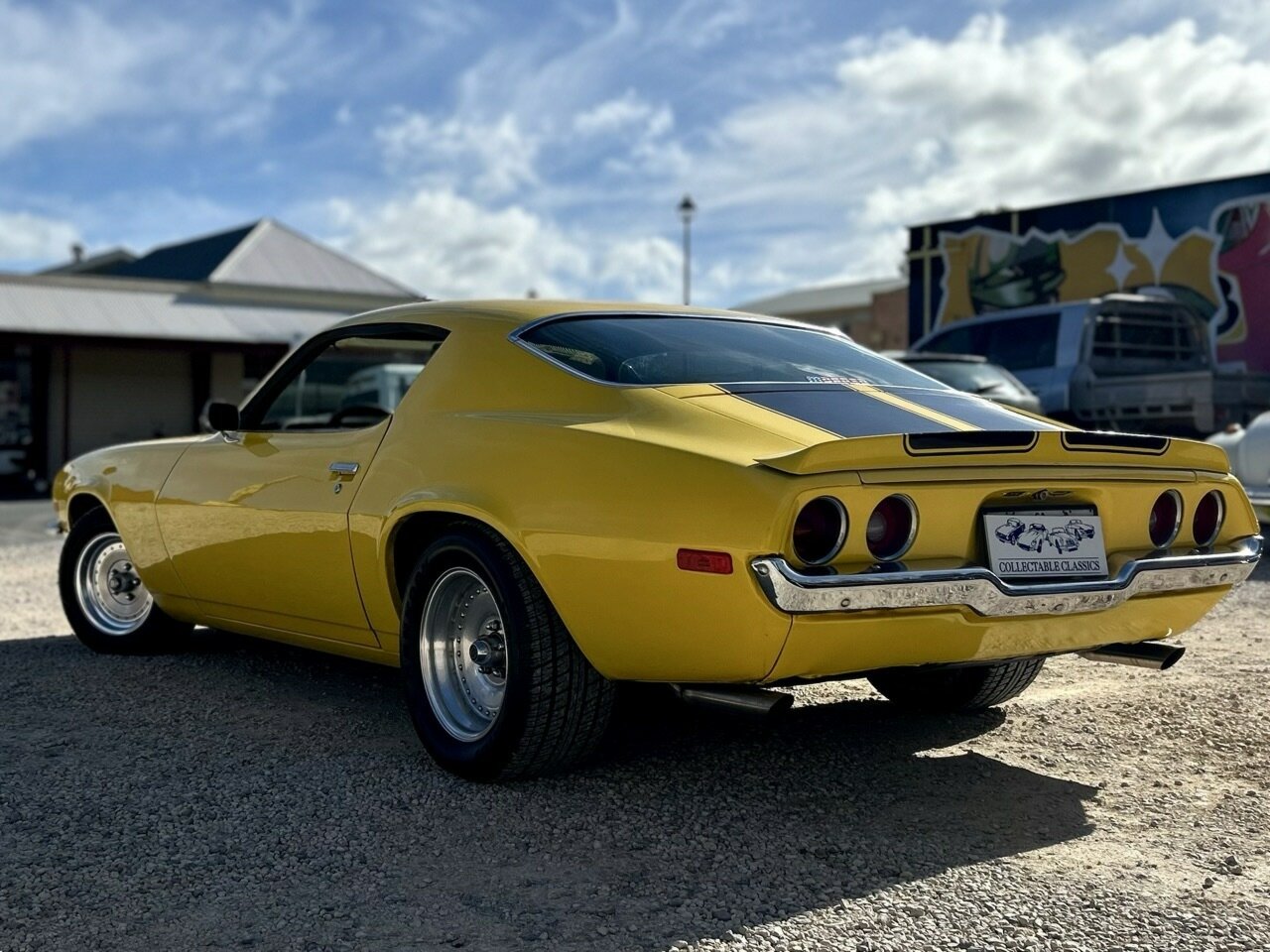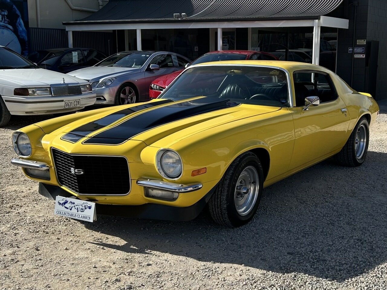 Just arrived - If you ever wanted to own your own Bumblebee, this 1971 Chevrolet Camaro SS is a gorgeous pick. Imported in 2012, this Camaro has had just two Australian owners. It is driven by a 270hp 5.7L (350ci) V8, which is paired to a 3-speed 'Turbo Hydramatic 400' automatic transmission. The Camaro was optioned with the SS package, which included dual exhausts, power brakes, a black finish grille, and several other goodies. The Camaro is also fitted with power steering and an upgraded Kenwood radio with Kenwood speakers and an amplifier. Since arriving in the country, the Camaro has had lots of money spent on it, including a new exhaust, upper and lower ball joints, upper arm bush kit, lower control arm bush kit, outer and inner tie rod ends on both left and right sides, and the transmission has been serviced. Sitting on a set of Centreline wheels, the Camaro is an older restoration which is finished in Sunflower Yellow with a black interior. Overall, the car presents neatly for the age and would make a wonderful Sunday cruiser. The Camaro is complete with a small file of receipts, as well as the rights to the SA plates 'RSS071'. This is a great example of an American classic pony car that is an absolute head turner.