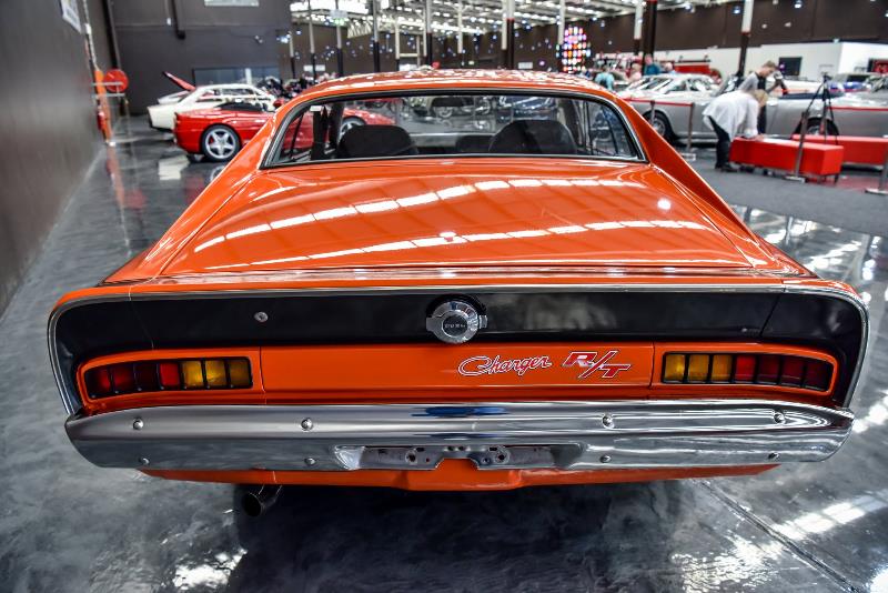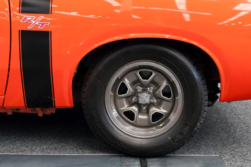 This iconic 1972 Charger R/T was restored in a completely original fashion and presents in the most desirable Hemi Orange with black accents. It is one of the best examples in the country. The black interior is immaculate and has been masterfully re-trimmed in a period-correct manner. The engine bay and undercarriage present as well as the exterior; a testament to the quality and extent of the restoration.