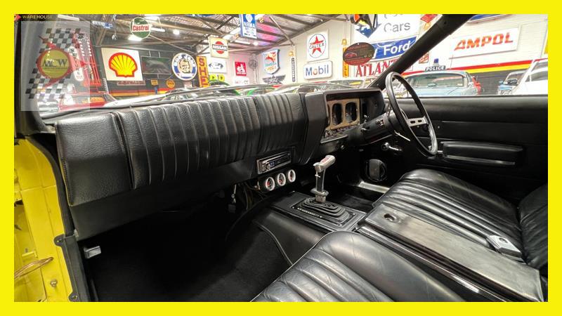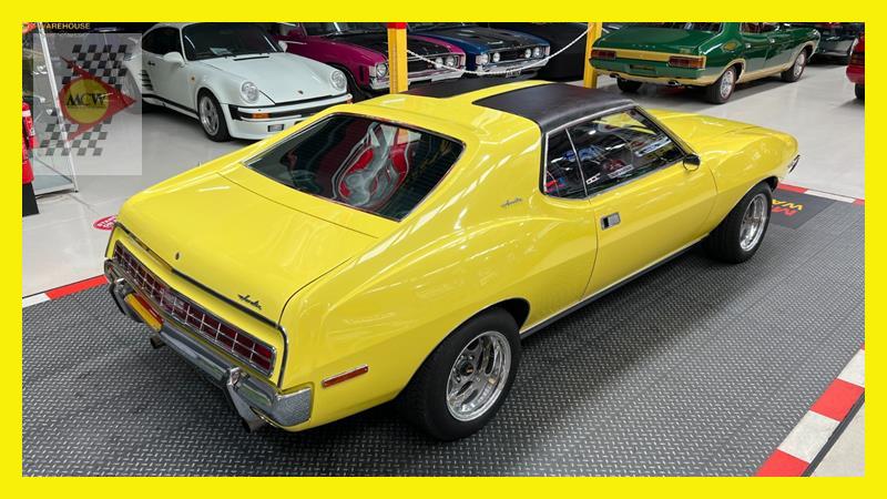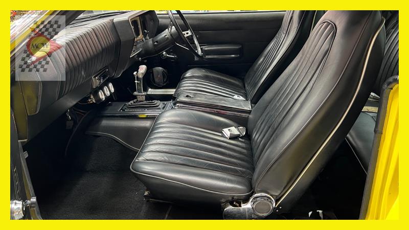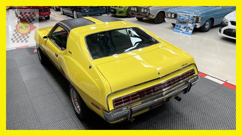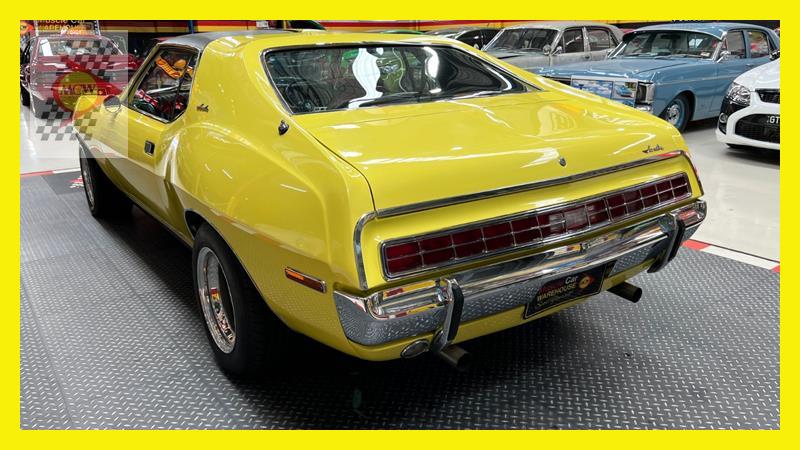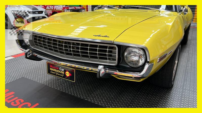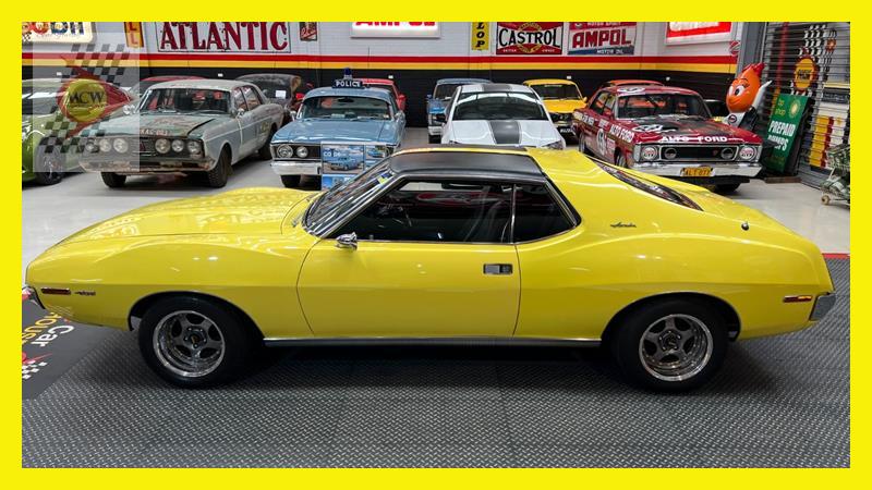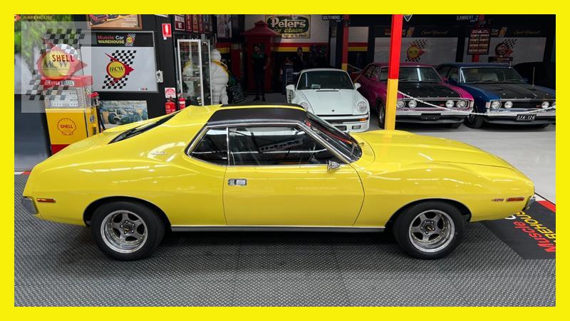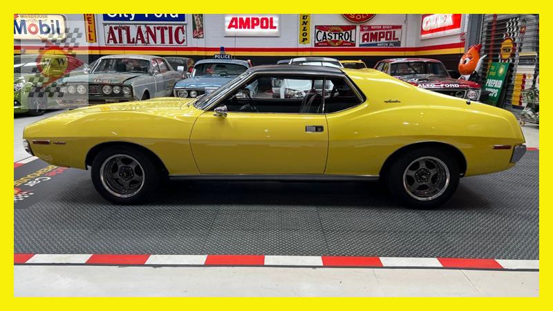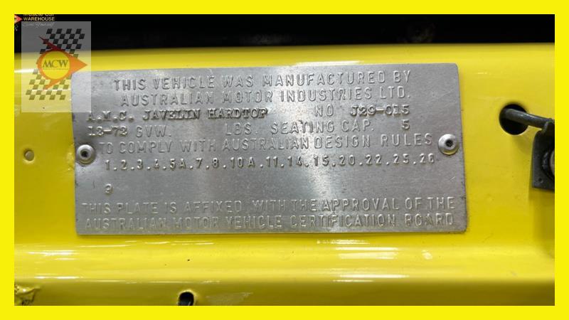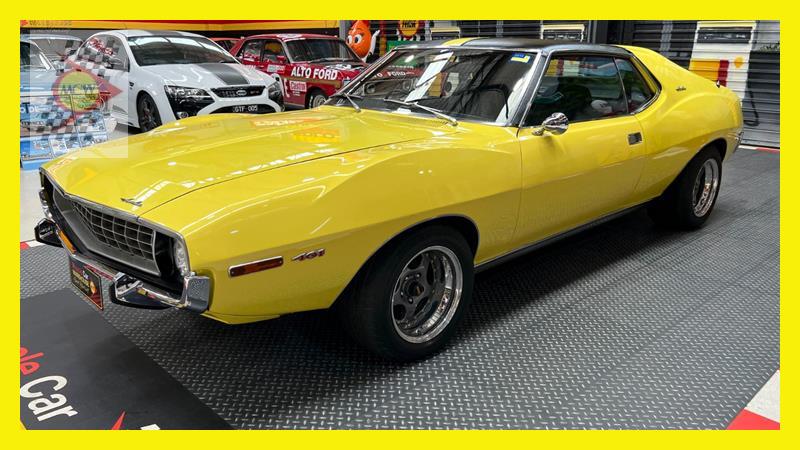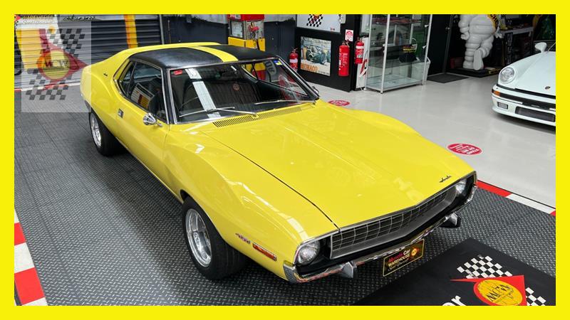The AMC Javelin is an American front-engine, rear-wheel-drive, two-door hardtop automobile manufactured by American Motors Corporation (AMC) across two generations, 1968 through 1970 and 1971 through 1974 model years. The 1972 model year Javelins featured a new "egg crate" front grille design with a similar pattern repeated on the chrome overlay over the full-width taillights. The AMX version continued with the flush grille. A total of 15 exterior colours were offered with optional side stripes. This Rambler Javelin is a genuine two owner car and one of only 48 Australian delivered right hand drive examples. The striking yellow colour and the Targa style black vinyl roof go nicely with the tastefully upgraded F90 Simmons wheels. Inside the car is all original except for an upgraded B&M shifter, Auto Meter oil pressure, water temperature, voltage gauge, stereo and fire extinguisher. Under the bonnet is the famous 401 engine with chrome accessories, MSD ignition, Edelbrock inlet manifold and air cleaner. Now available for inspection by appointment at our Kogarah facility.