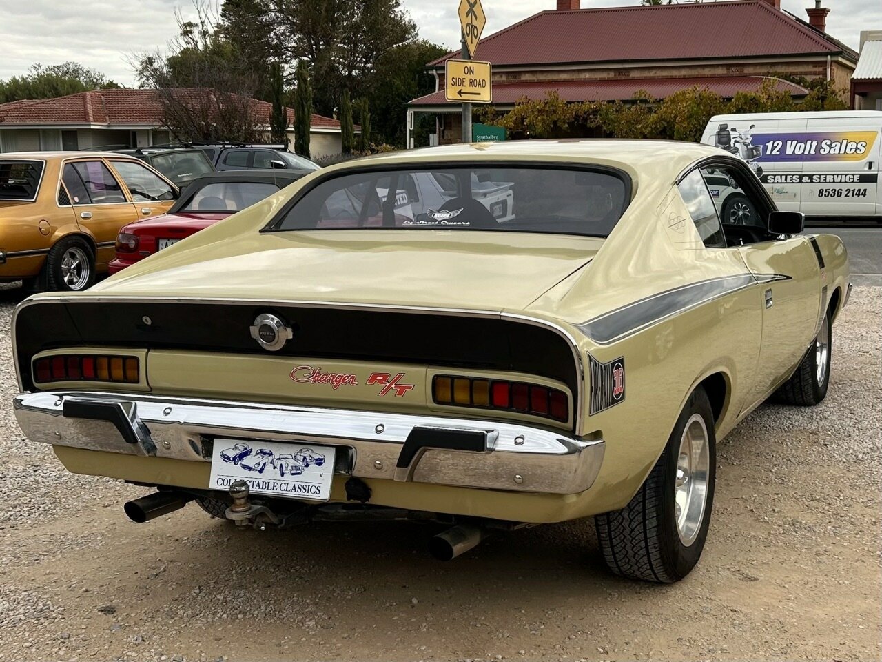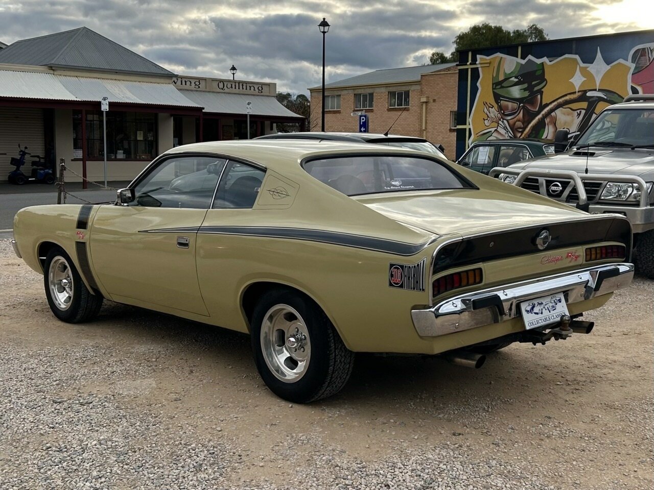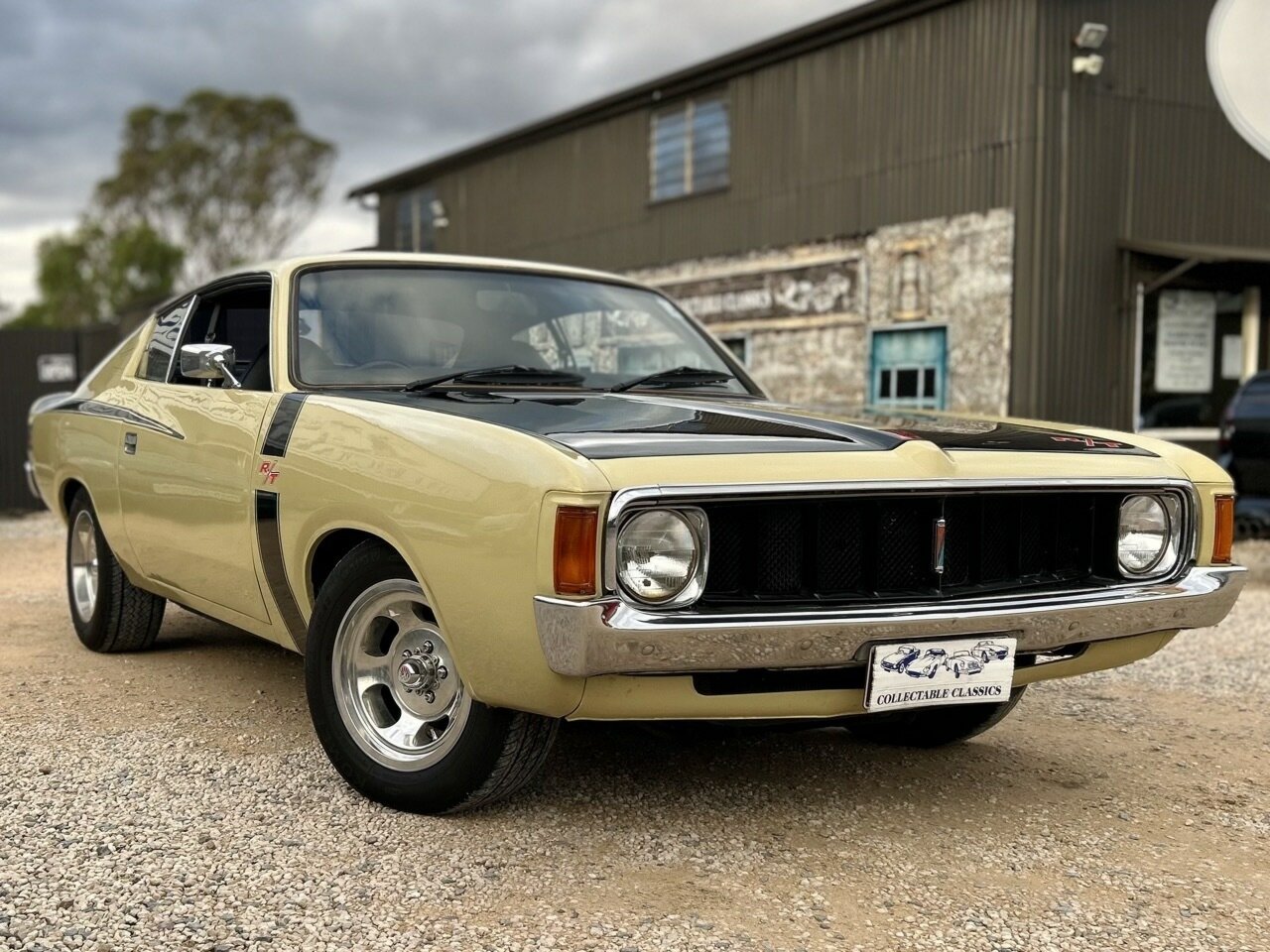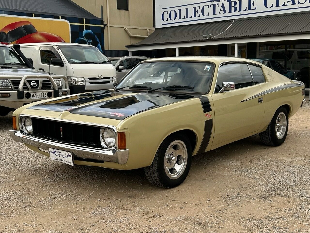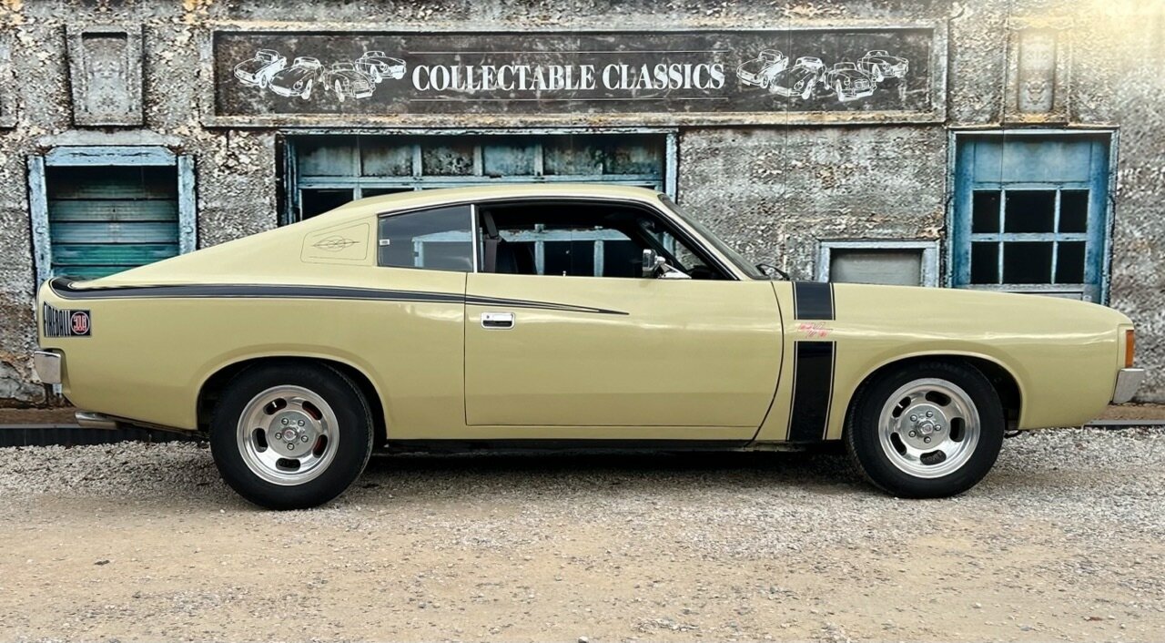 Just arrived - Hey Charger! This 1973 Chrysler Valiant VJ Charger 770 has just arrived at Collectable Classics. With a total of 10,509 Chargers built in the VJ model, the R/T finally saw its demise with just a handful produced. This 770 has evolved into a tribute car to commemorate the end of the R/T line. Powered by the 'E44' 318ci (5.7L) 'Fireball' V8, the VJ is equipped with a 3-speed automatic transmission. The current owner performed a minor restoration on the vehicle in 2022. This saw the VJ fitted with new front brake rotors, a fresh Derale Dyno-cool electric fan, a torque converter rebuild, and the interior reupholstered. Originally finished in Star Bronze, the VJ also received a respray and is now presented in Blonde Olive with the iconic R/T decals. The VJ presents tidy but certainly not new, while the interior is very neat, with a fishscale dash and upgraded Pioneer radio. Enjoy minimal on-road costs with historic registration, and you're all set for a nice Sunday cruise.
