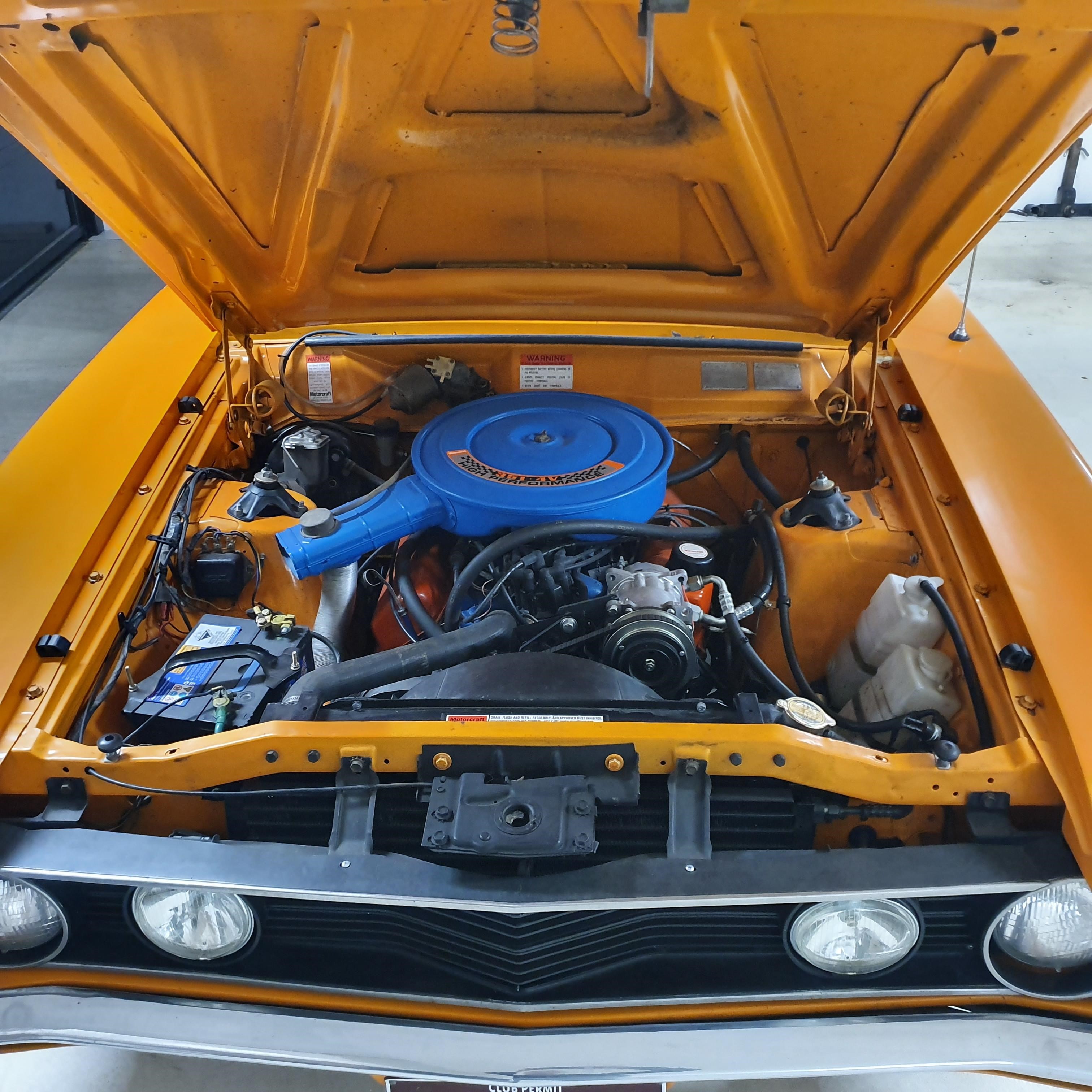 351ci, Matching numbers K code, factory top loader with 9 inch diff / fin drums. A/C, power steering, leather interior, fully restored 3 owner car with original books and lots of receipts. Paint and panel by Real Steel Automotive. Lots of $$ spent.