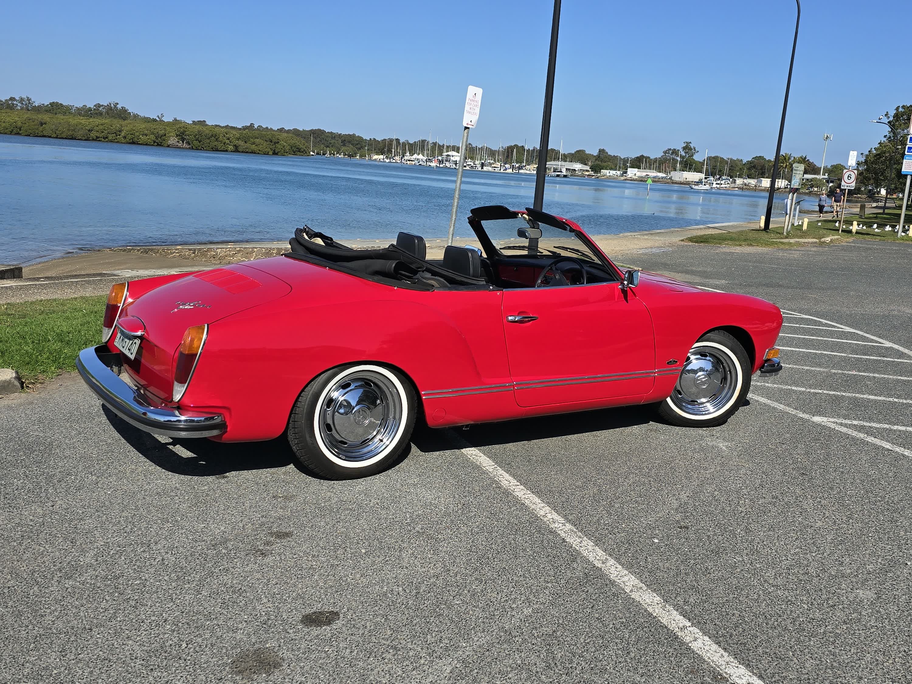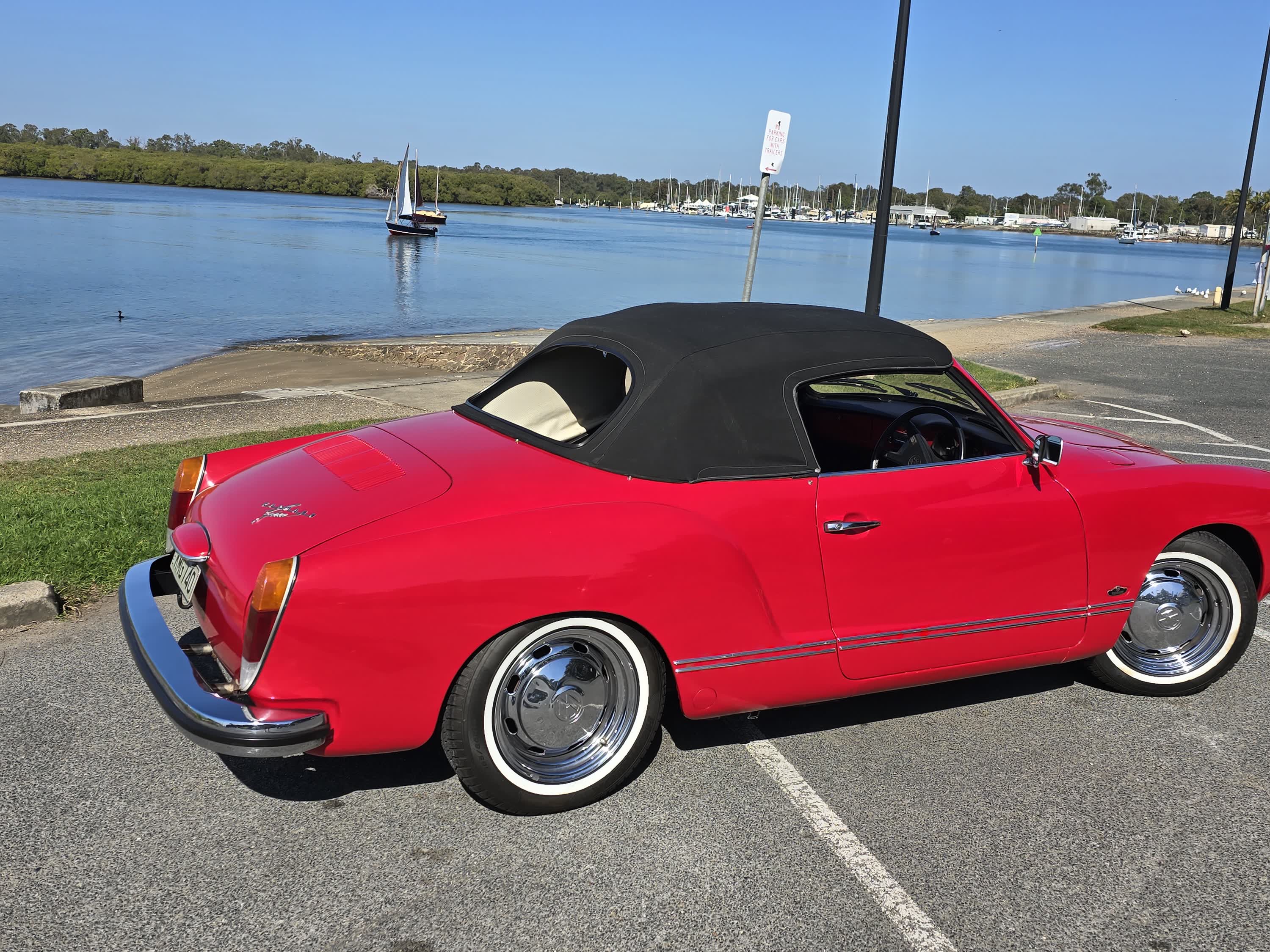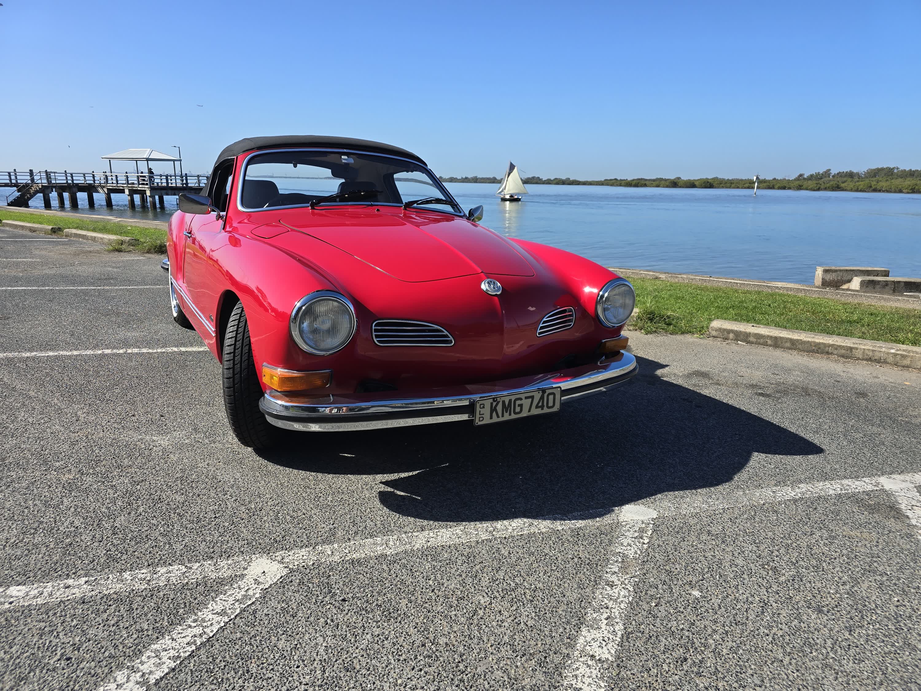 It is not perfect but the Interior is excellent as is the Cabriolet top. Paint and chrome are in good condition in keeping with the car’s age and it drives as it should. Looks great in Signal red and seems to spark positive comments and attention.