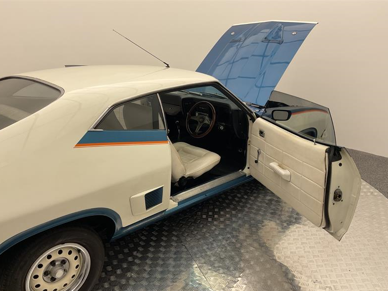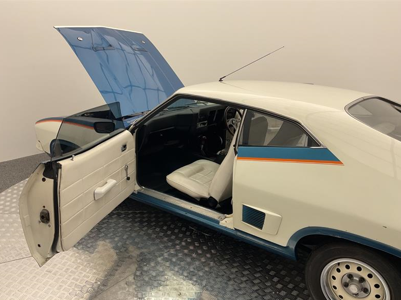 Ford 1975 XB Falcon John Goss Special V8 Manual Coupe, Powered by a 5.0 Litre 302 V8 engine, it produced when new 179Kw and 409Nm of power and torque, delivered to the rear wheels via a 4 speed manual, this is a very genuine car and mostly original, its running all original glass bar front window, all trim in genuine even the carpet, it has had some racing history over it time the original engine was removed and stored away while racing it, and now it’s been reunited, the car has also the battery has been relocated in the boot, with subs and amps. The paint has had a few touch ups over time, and a few knocks and taps. It’s had a few repairs here and there.
