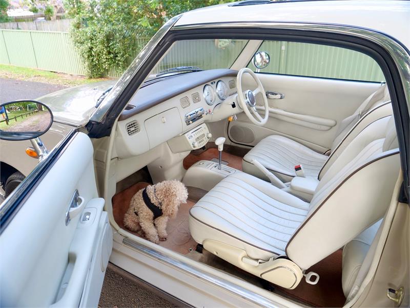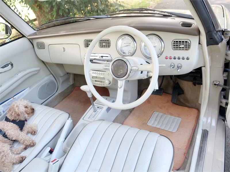 Original leather seats are in top condition, the roof is in supern condition. This Figaro is totally rust free and accident repair free.