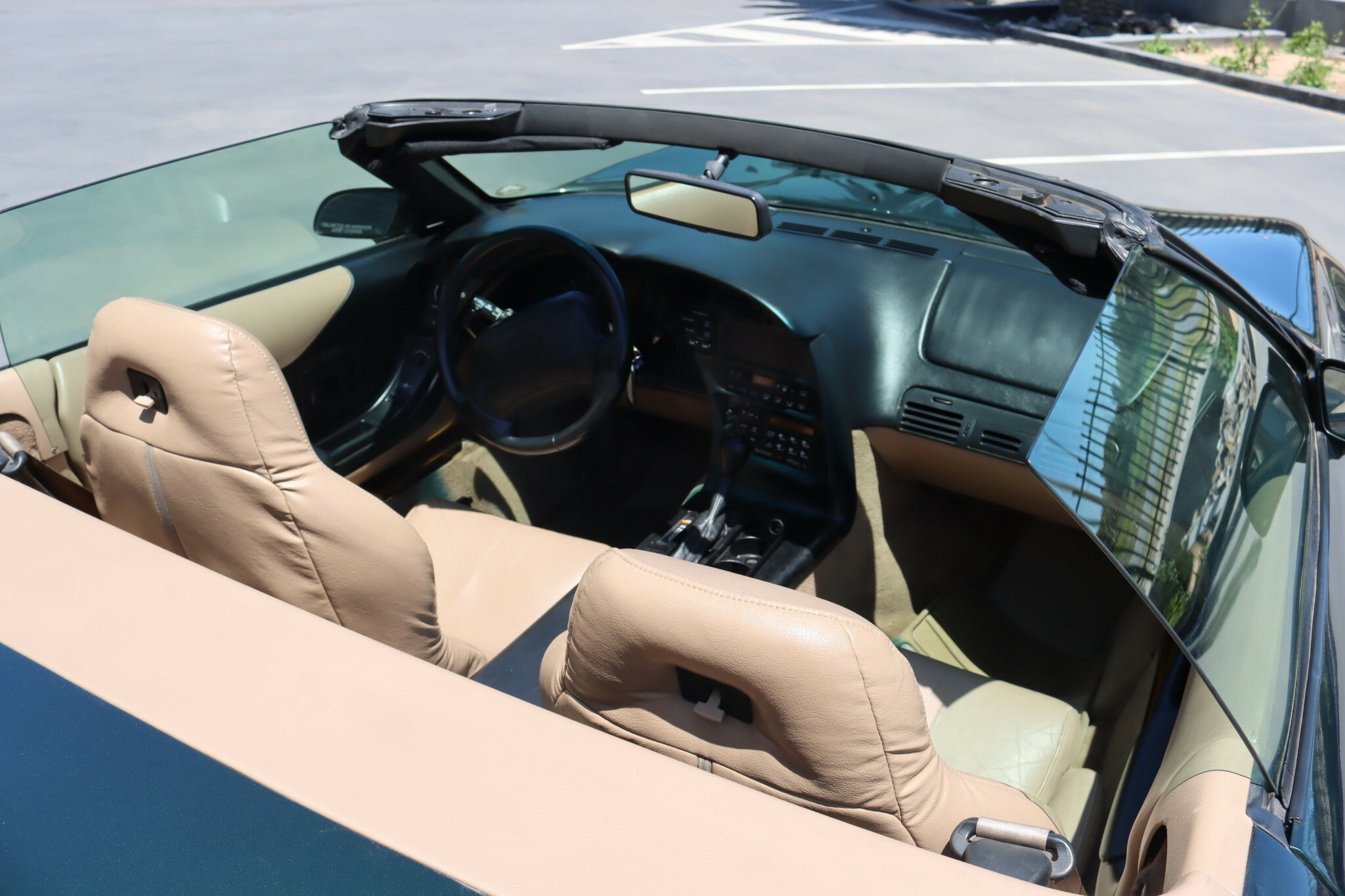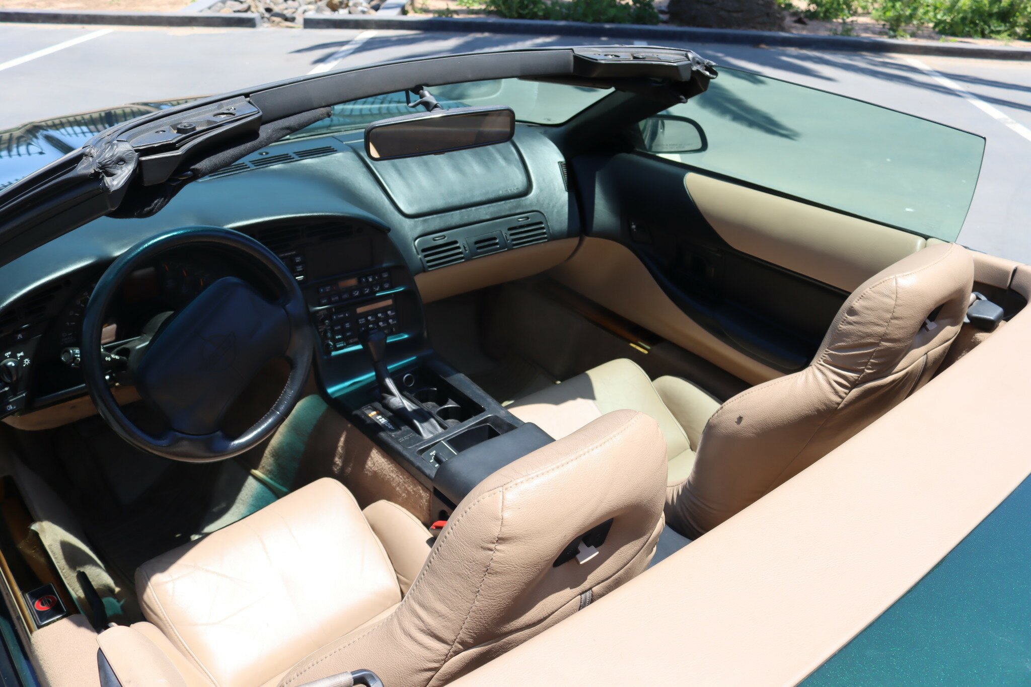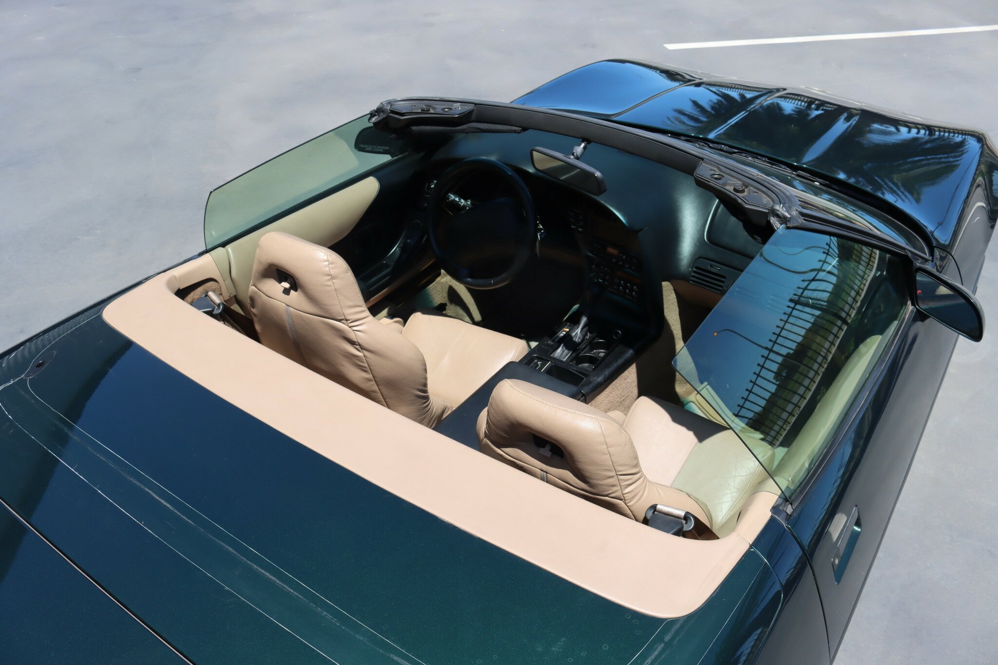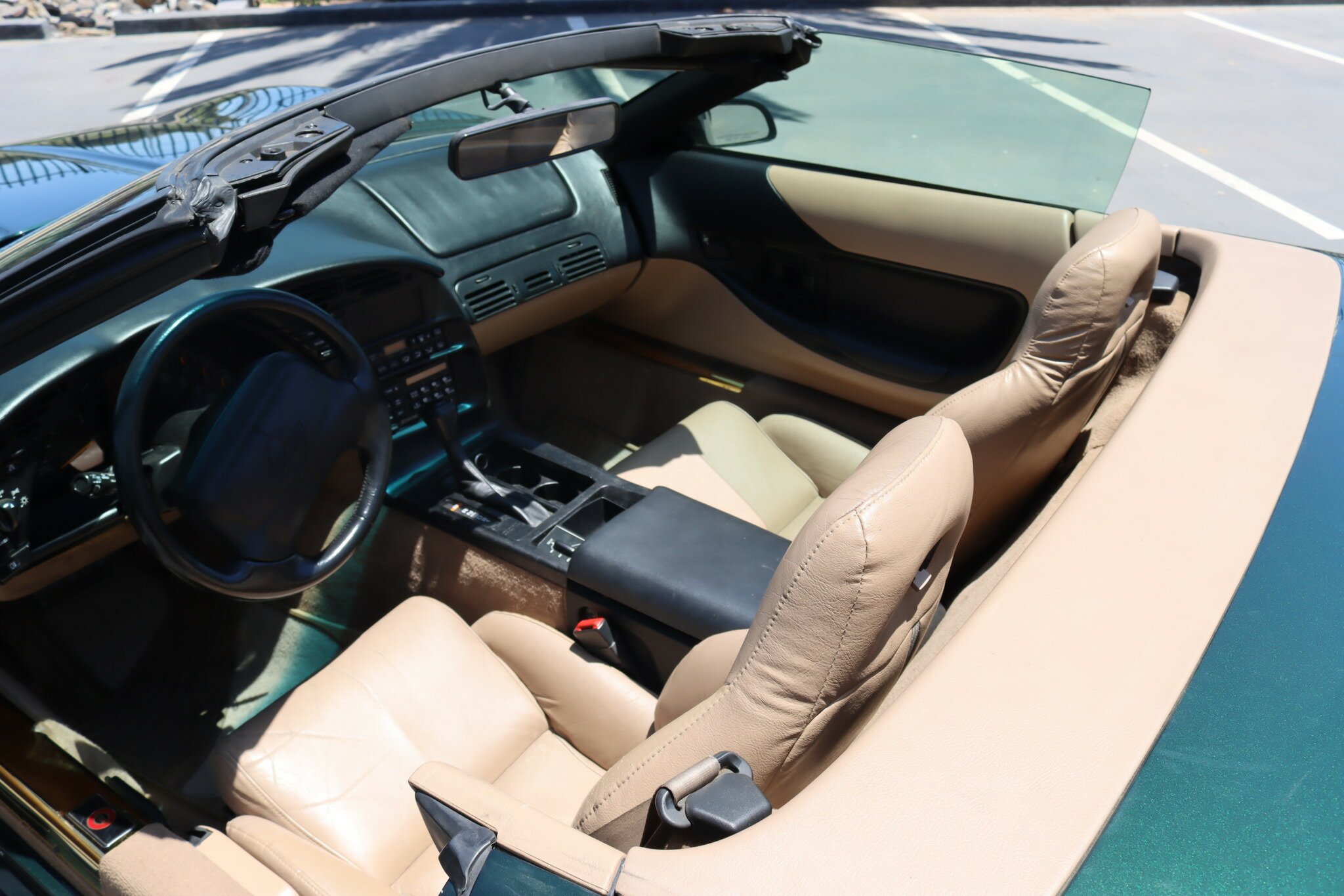 Presented in good quality Polo Green Metallic exterior with Beige Convertible top in like new condition. Interior is Light Beige leather with carpet again in like new condition. Polished Chrome alloys sets this car off. Running the 5.7L (350ci) OHV, multi port injected V8 producing 300bhp with 4-speed auto transmission. Features include: Aircon, Power Brakes, ABS, Traction Control, Power Steer and Power Driver’s seat. Only 41,350 genuine miles. Sports car luxury with great performance at this price.
