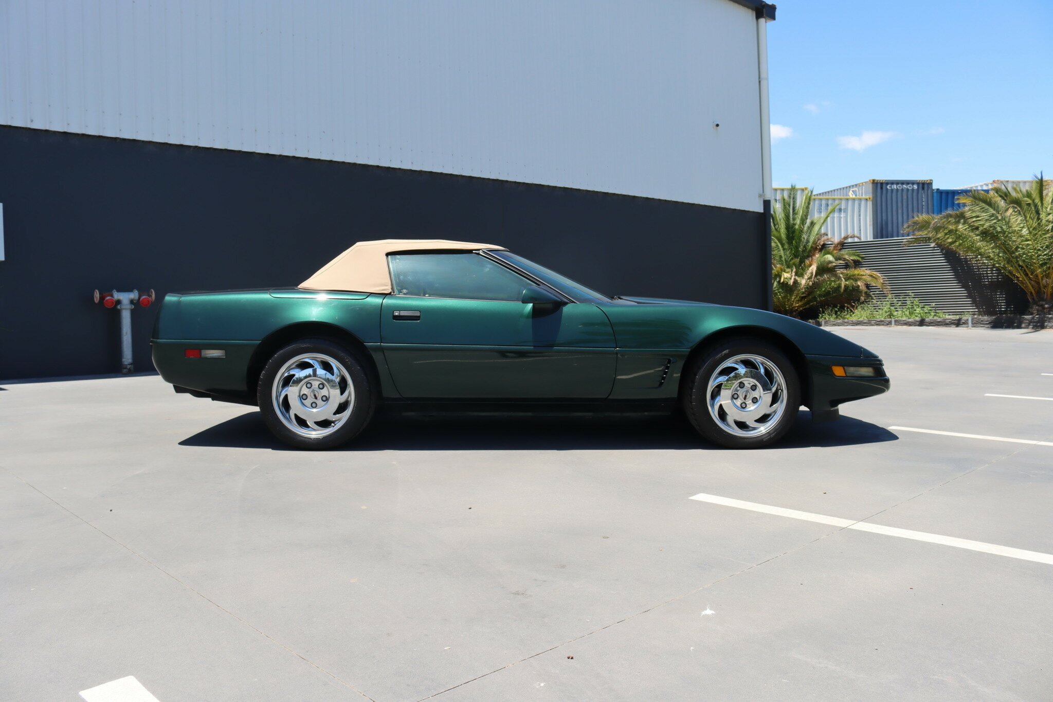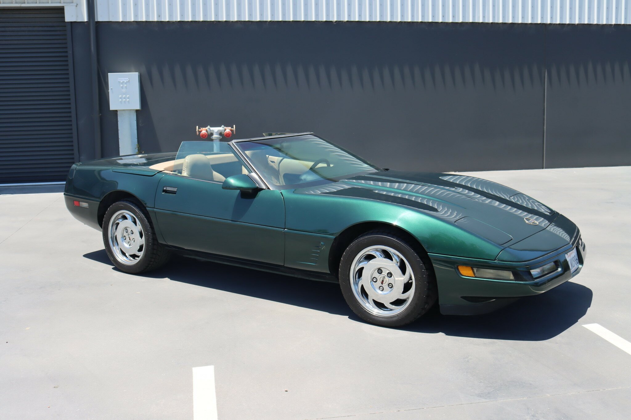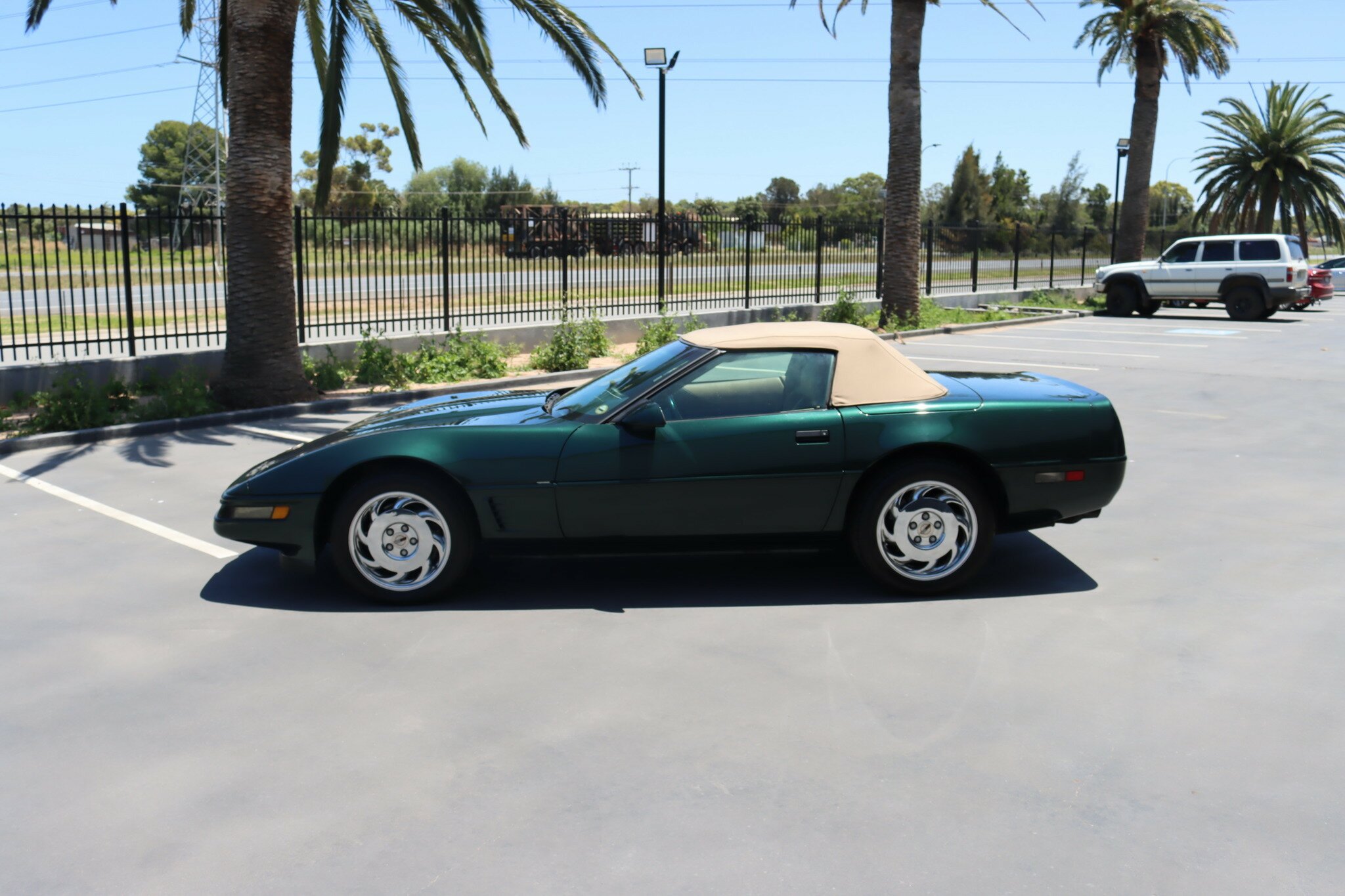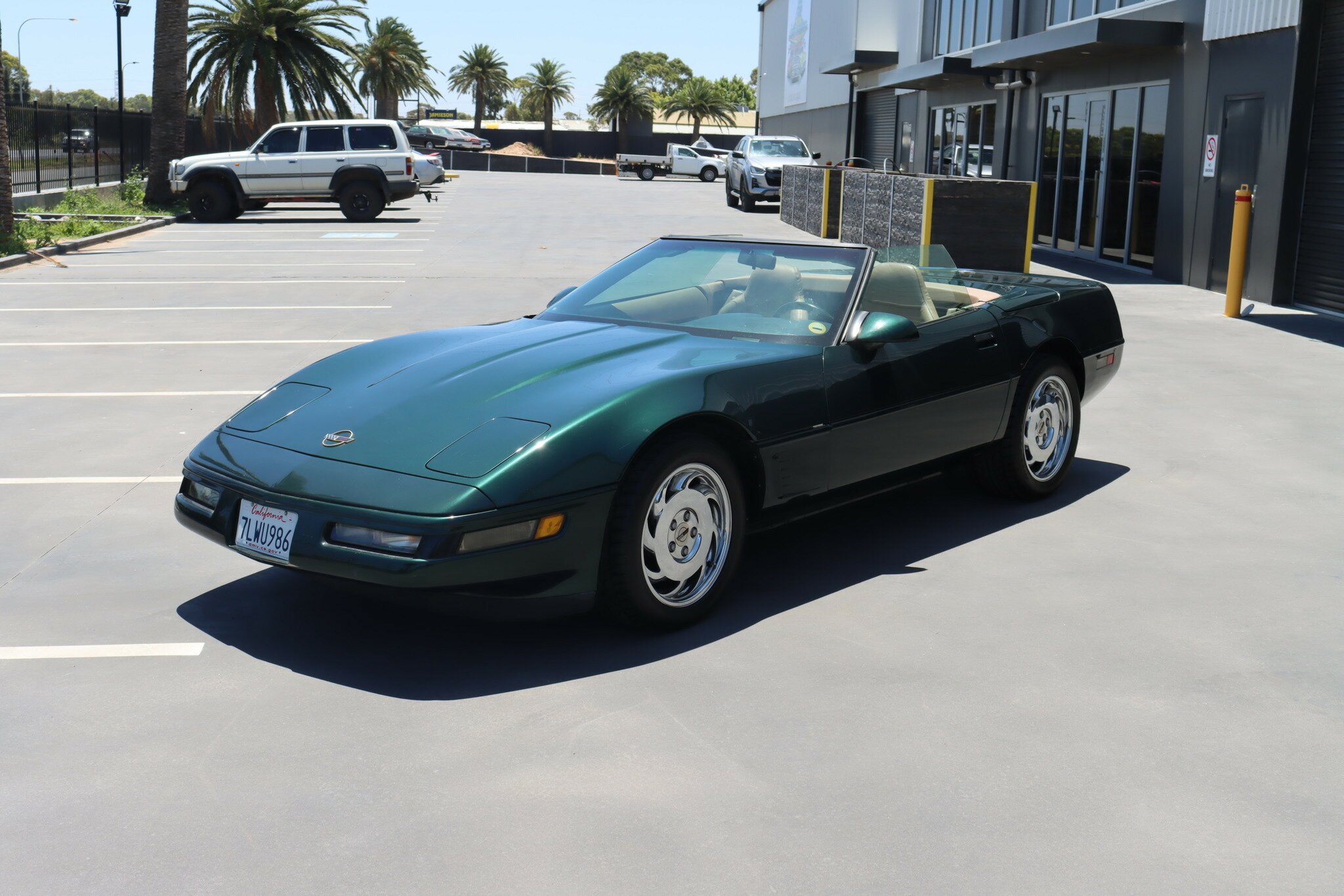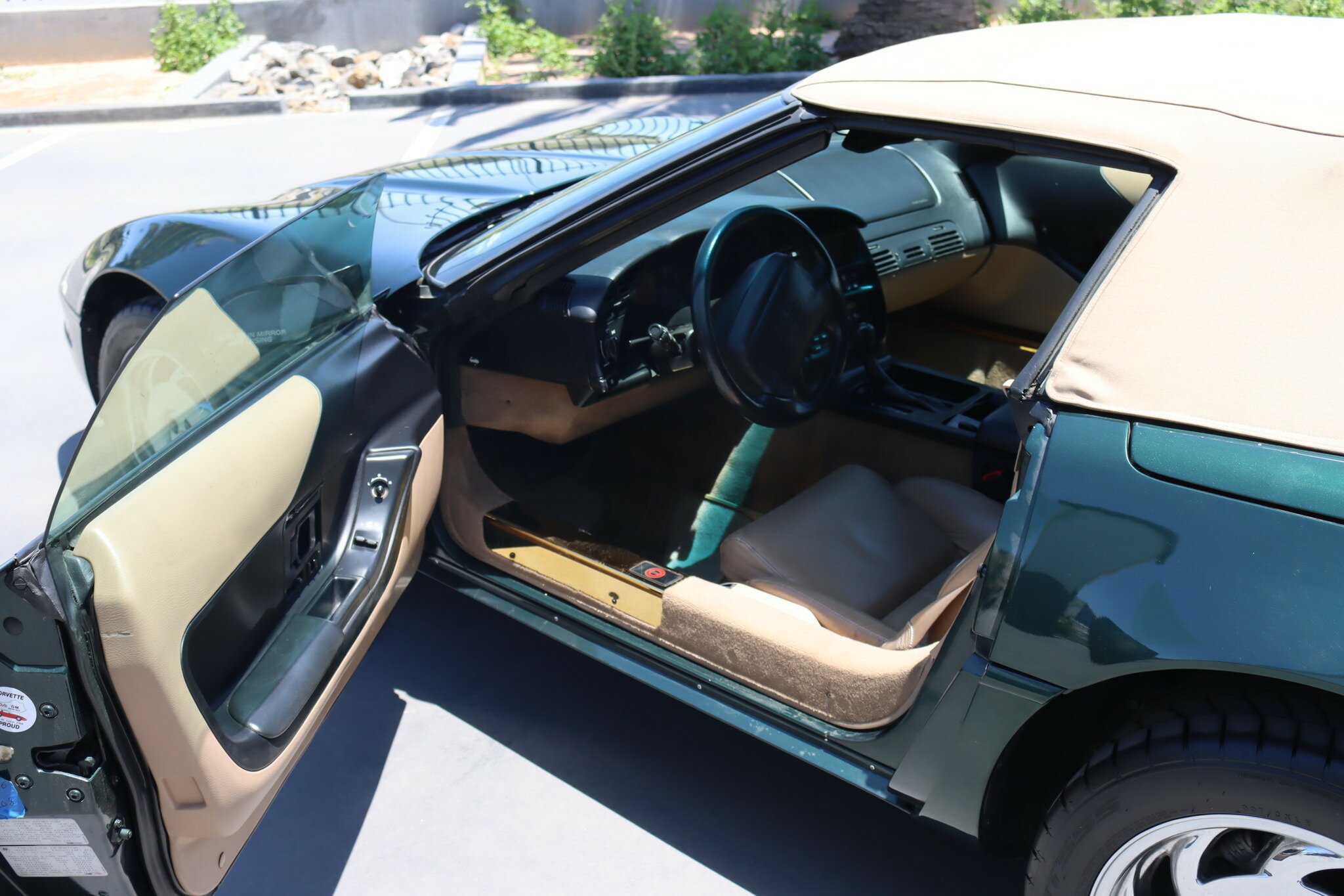 Presented in good quality Polo Green Metallic exterior with Beige Convertible top in like new condition. Interior is Light Beige leather with carpet again in like new condition. Polished Chrome alloys sets this car off. Running the 5.7L (350ci) OHV, multi port injected V8 producing 300bhp with 4-speed auto transmission. Features include: Aircon, Power Brakes, ABS, Traction Control, Power Steer and Power Driver’s seat. Only 41,350 genuine miles. Sports car luxury with great performance at this price.