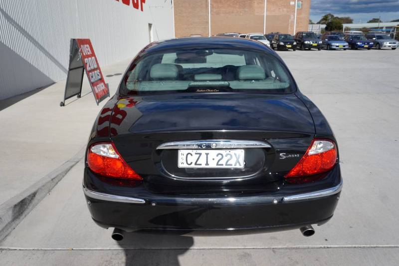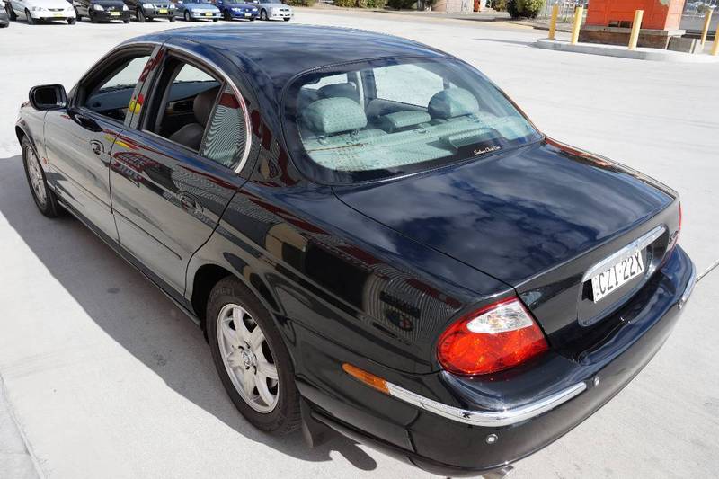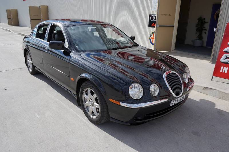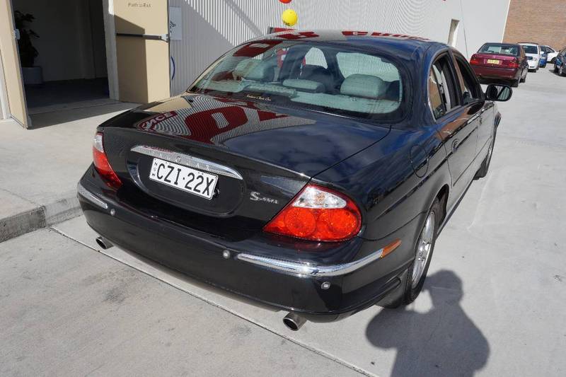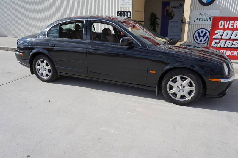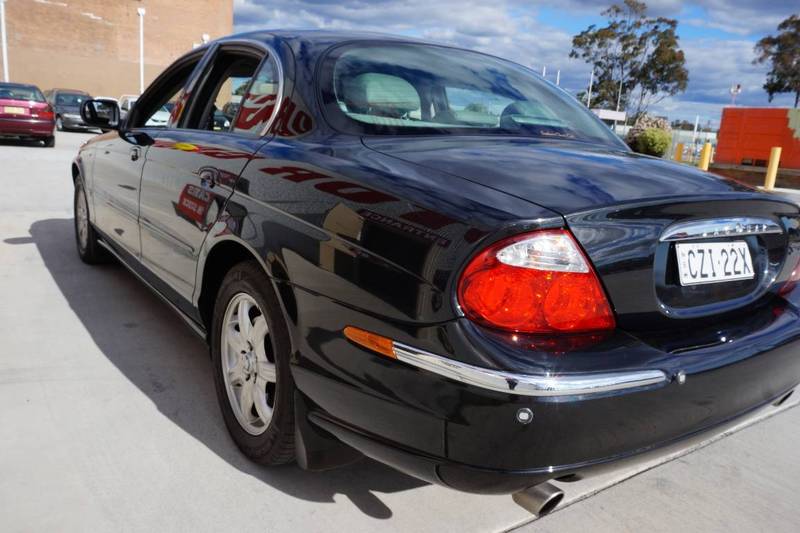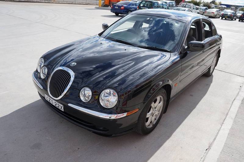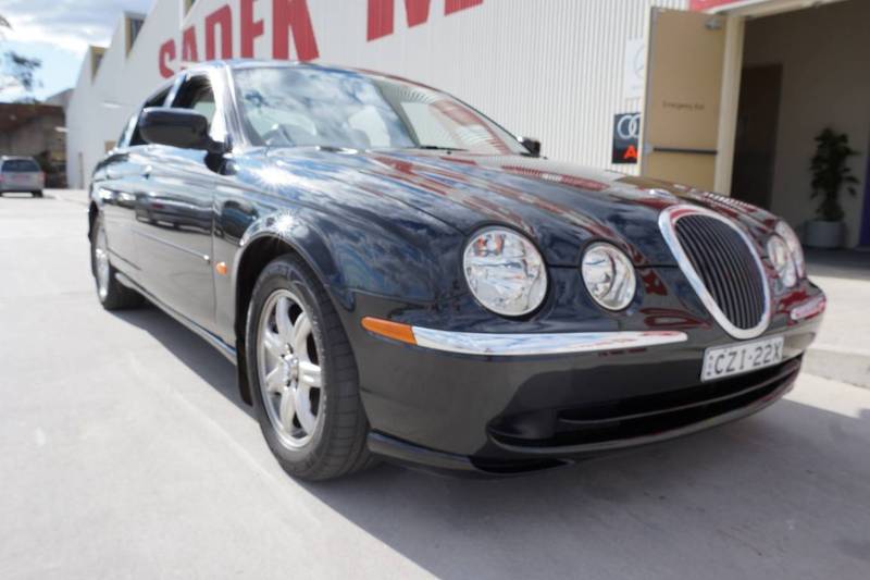 2000 Jaguar S–Type V6... Black over light brown leather upholstery! 164 alloys, wood grain trim, parking assist sensors, power front seats, cruise control, cd player and logbooks. Any inspection welcome.