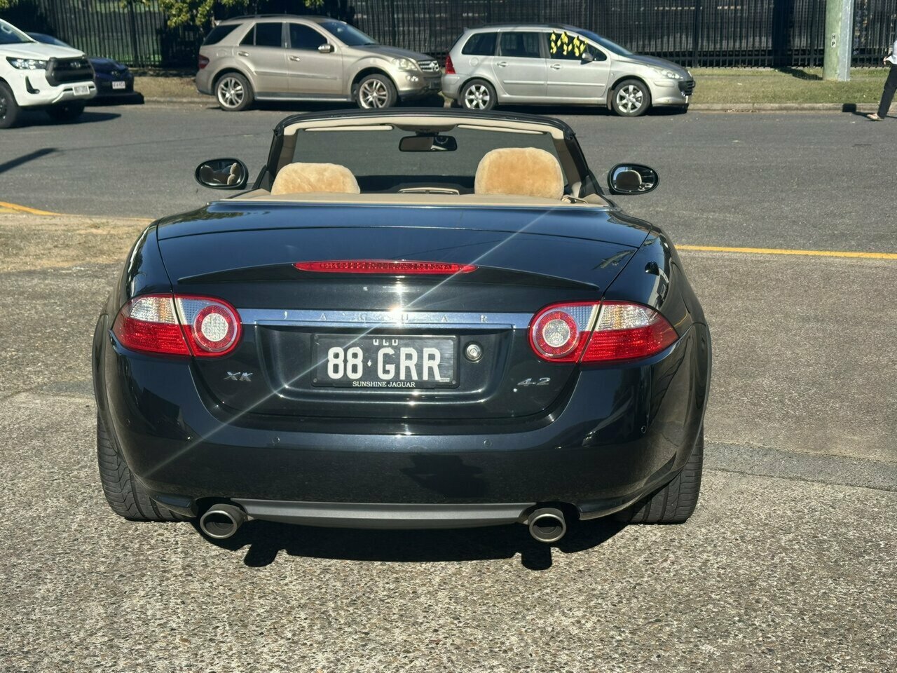 One lady owner, 49,000 K's!!! 4.2 V8,Convertible, Metallic Black with Caramel leathe and Burl Walnutr interior,fitted with matching, luxurious sheepskin seat covers.Perfect up to date Jaguar service history Unique, Faultless XK!!!A10!!