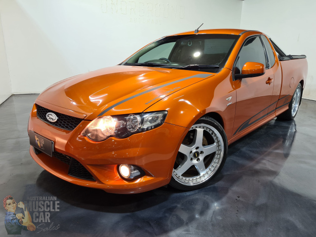 FPV's GS Ute was a hit from day dot. A useful work vehicle it also doubled as an affordable performance car with an engine that has plenty more to give in terms of power potential. Based on the US-sourced 5.0 litre V8 that first came to light in the 2010 Ford Mustang, the Australian delivered Coyote V8s received significant development under the Miami Project at FPV’s engine plant in Victoria with a little extra help via a top-mount Harrop supercharger and a 75mm electronic throttle body. Off the showroom floor the GS delivered a very healthy and understated 315kW and 545Nm of road-ripping grunt. Aftermarket tuners have been able to make some subtle mods to this wonderful factory package to deliver in excess of 400 kW at the wheels from simple modifications such as an ECU tune, intake and exhaust tweaks.For sale is one such GS Ute. Running the all matching numbers 5 litre supercharged V8 and 6 speed manual gearbox with heavy duty twin plate clutch this log booked GS has been modified with the addition of a Flash 4 tune, fitment of smaller pulleys, a K&N filter, 1000 cc injectors, a Harrop intercooler kit plus replacement of the factory exhaust with a twin 3" system and twin Bosch 044 fuel pumps. The result is 408.2 RwKW on the conservative tune with 98 octane petrol and 454.8 RwKW on E85 petrol. FPV GS Ute Build No.103 presents nicely in it's original Sunburst orange pearl paint with the original black cloth trim and excellent flush-fit soft tonneau cover and tough-as-nails fully integrated bedliner. The GS comes with log books and 160,903 klms from new and Performance Dyno sheets. Riding on 20" Simmons FR1 alloy rims with good rubber, the car comes with full NSW registration until April, 2021. Located in our Kingsgrove, Sydney showroom for your immediate inspection. (Ref. 5610)If you wish AMCS will gladly arrange a video inspection of the car using WhatsApp and of course there is no issue with door to door freight delivery anywhere in Australia or New Zealand. Also please note if you have a quality muscle or classic car you wish to sell or have valued please give us a call at AMCS, we will be happy to assist you.