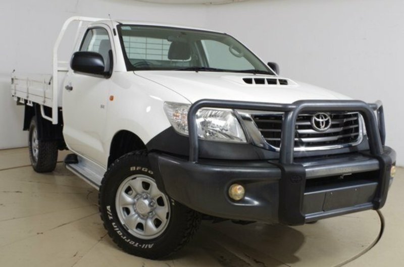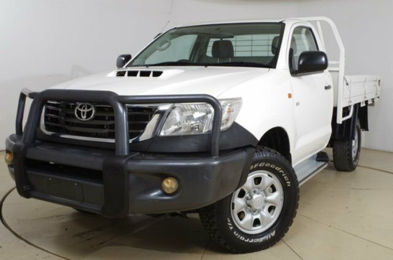 This ONE OWNER, 2012 Built, Hilux **SR** SILGLE CAB **4x4** AUTO, 3.0Litre TURBO DIESEL has FULL SERVICE HISTORY. Features include genuine TOWBAR with 2,500Kg towing capacity ----- genuine STEEL TRAY ----- AUX/USB connectivity so you can play your favourite songs from your phone or USB/MP3 player ----- save money on fines and save your demerit points with BLUETOOTH connectivity ----- steering mounted stereo controls so you can change your music without taking your eyes off the road ----- make your trip safer and prevent speeding fines with CRUISE CONTROL ----- this Hilux has a SAFETY PACK, comes with 4 AIRBAGS and has been awarded a 4 STAR ANCAP SAFETY RATING to keep you safe on the road ----- and much more -----. Like all our vehicles a FULL SERVICE and SAFETY has been performed through our TOYOTA RAA approved workshop and with TOYOTA FINANCIAL SERVICES on site you could be driving your new car home today. This vehicle also comes with ----- 3 YEARS FREE unlimited kilometre WARRANTY ----- 3 YEARS FREE RAA Road Service -----. *****TOP TRADE-IN PRICES PAID*****