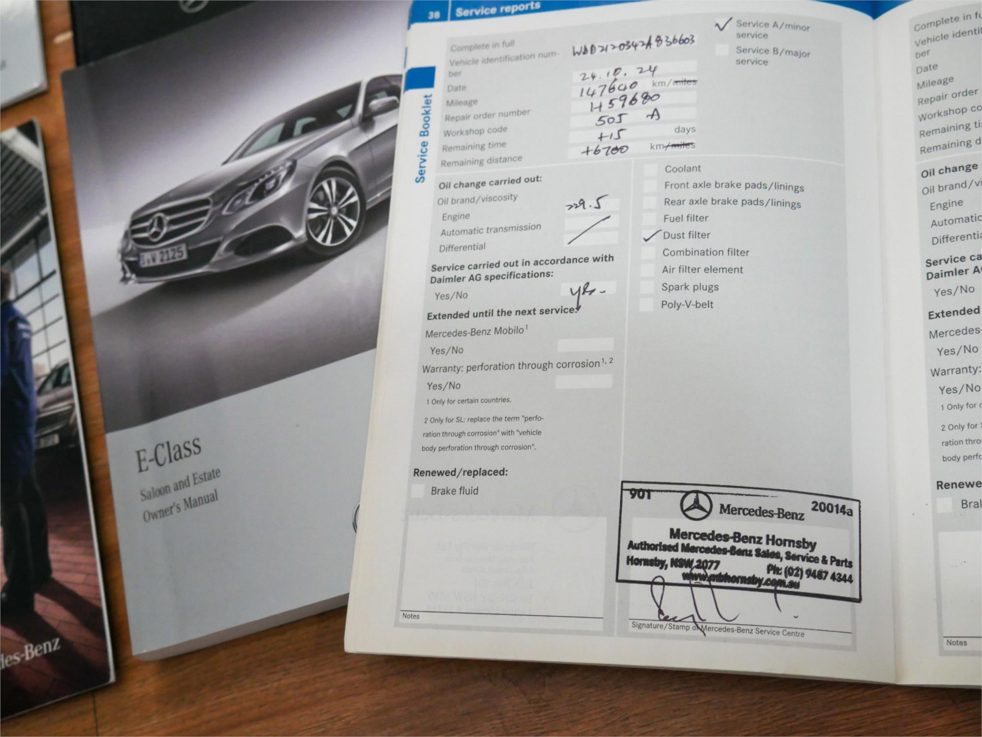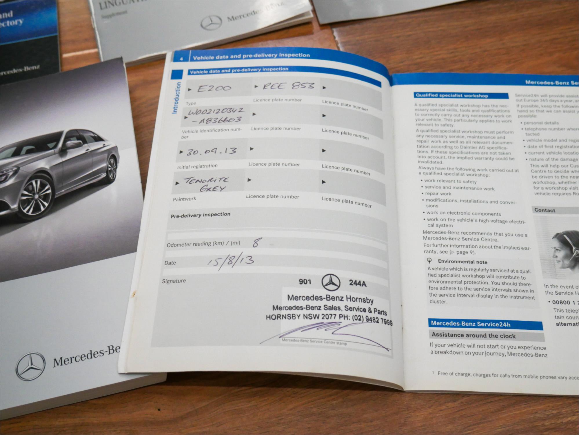 This late 2013 Mercedes-Benz E200 Avantgarde sedan from the W212 series is finished in Tenorite Grey metallic (code 755U) with a black interior complemented by fine-grain Black Ash timber trim (code 2A70). It was delivered new by Mercedes-Benz of Hornsby on 15th August 2013 and has had just the one private owner. The car comes complete with all its original factory literature, and a fully up-to-date service log book confirming every scheduled service from new — all completed by the selling dealer Mercedes-Benz Hornsby, with the exception of one carried out by a respected Mercedes specialist in Hornsby in 2016. The most recent service was performed at Mercedes-Benz Hornsby at 147,640km, and as part of our sale preparation the vehicle has just been freshly serviced by a local Mercedes-Benz specialist.