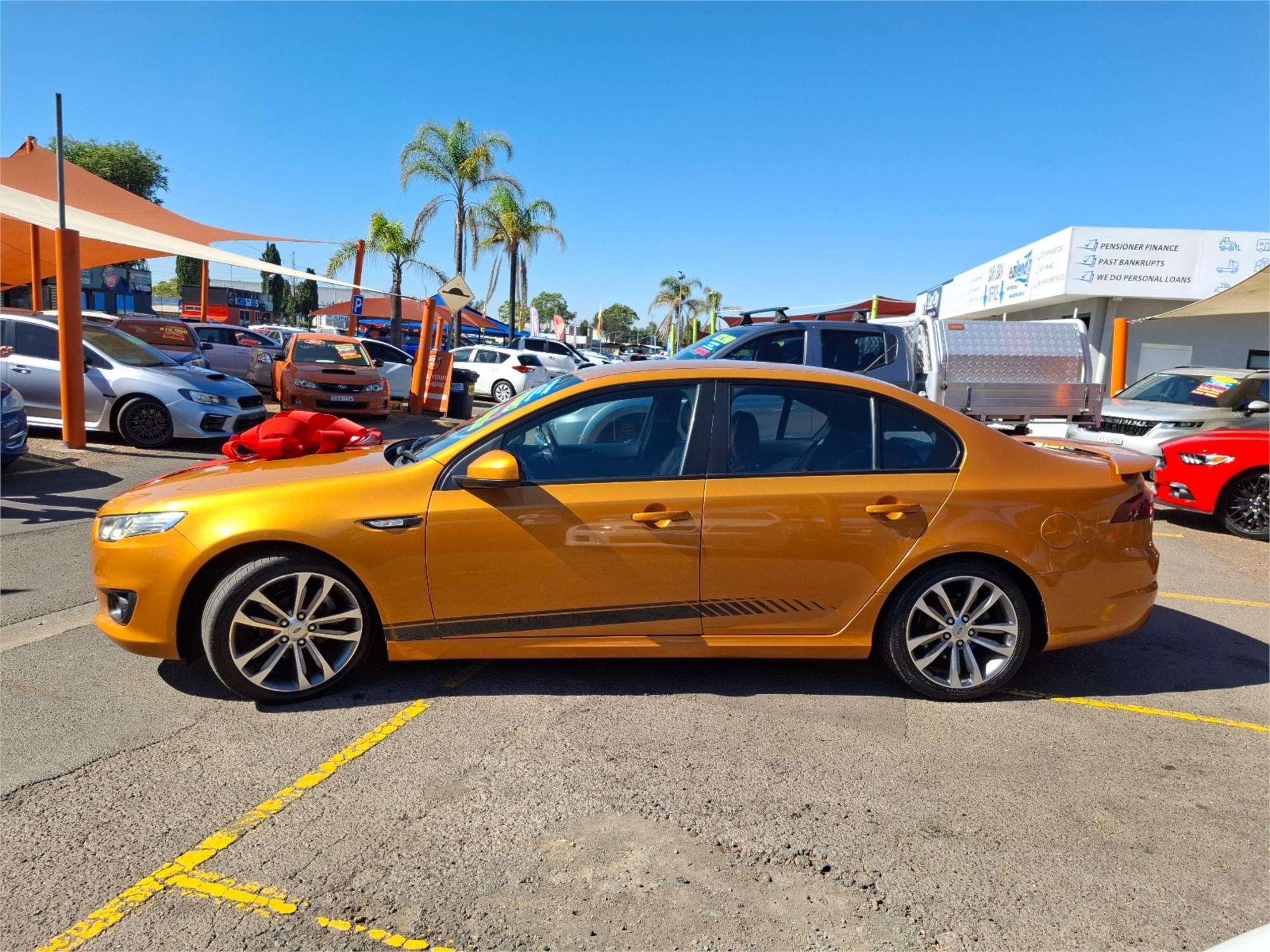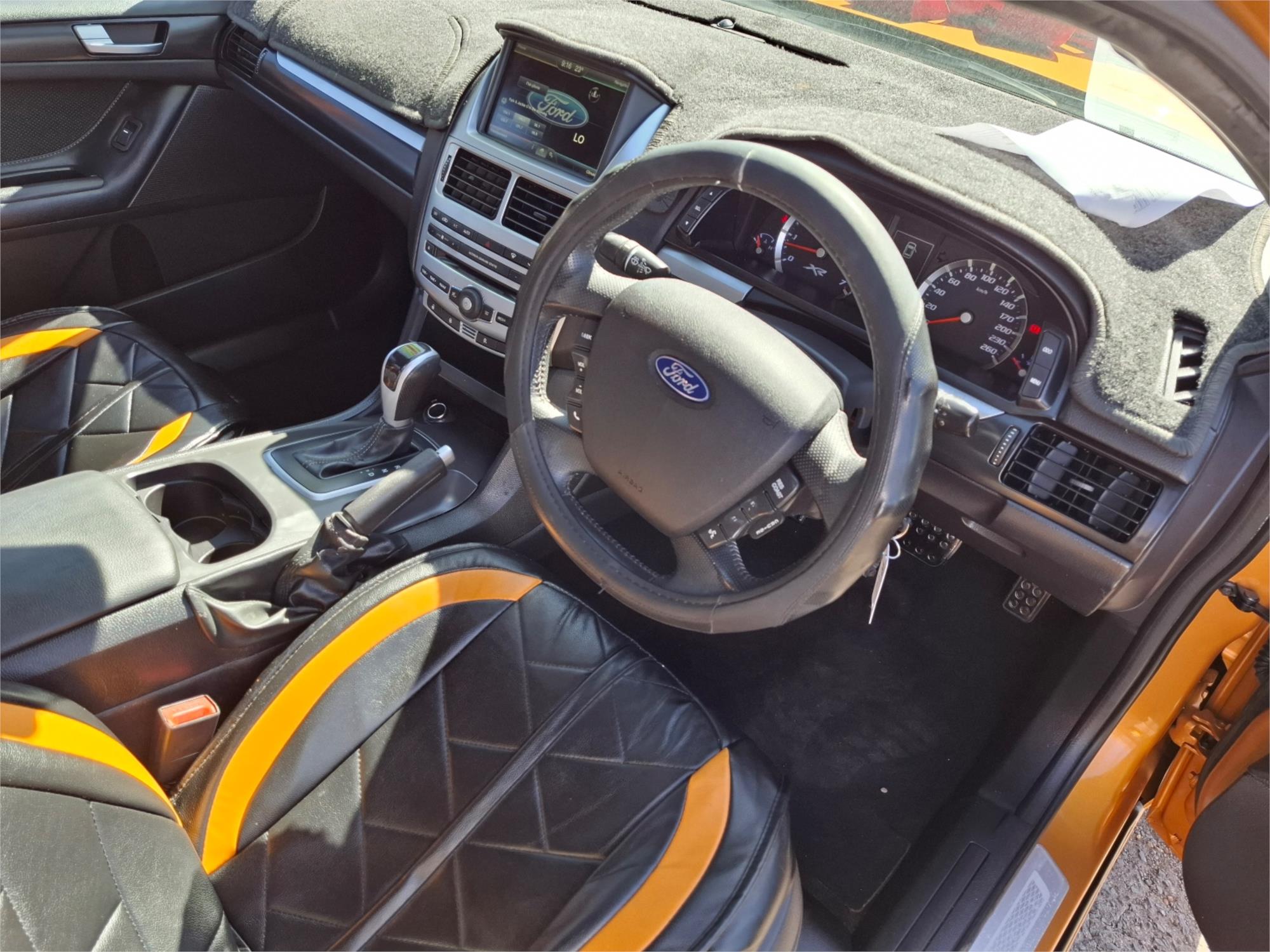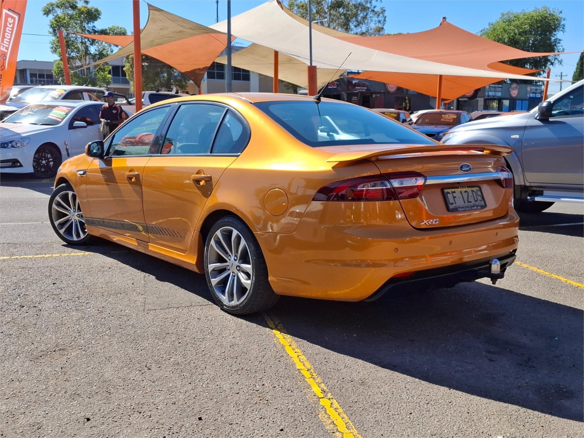 Buckle up, folks, because you're about to take a ride into the sunset with the Ford Falcon FG X XR6 Sedan. This isn't just any car; it's a 2015 masterpiece with an exterior so orange, it makes the sun look like it's not even trying. If you've ever wanted to drive a car that practically screams, ''Look at me, I'm fabulous!'', then this is your golden—or should I say, orange—ticket.
