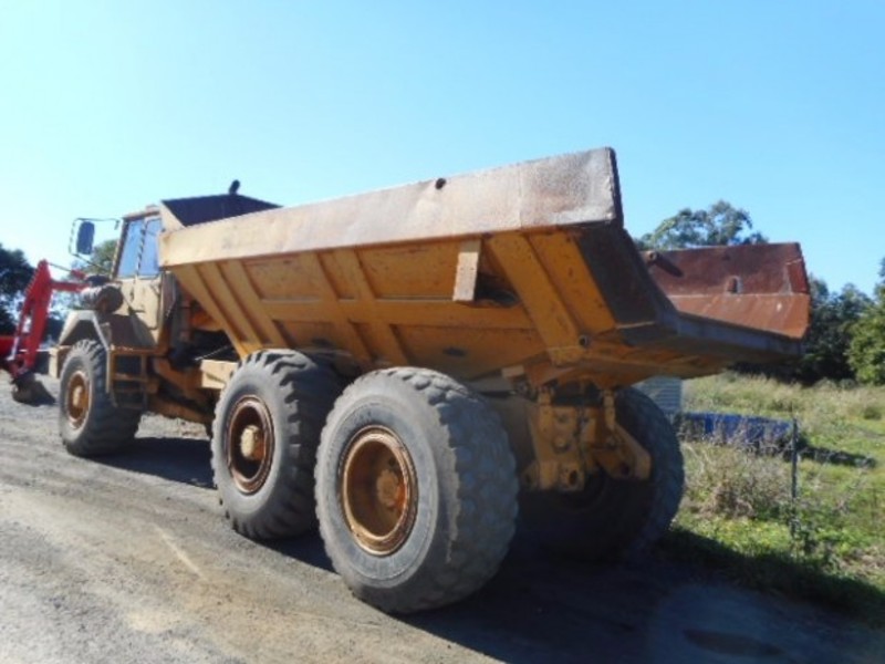Coming up for online auction 14th July to 19th July 2017. Volvo articulated dump truck. Type: 5350. Auto, new transmission, approx 200HP, tri-axle. Please call for more info on this item. Stock Ref OC372. Located at Strathenden NSW. See www.westerntraders87.com.au/auctions/ to register to bid. Need auction finance? Go to: http://www.westerntraders87.com.au/finance/