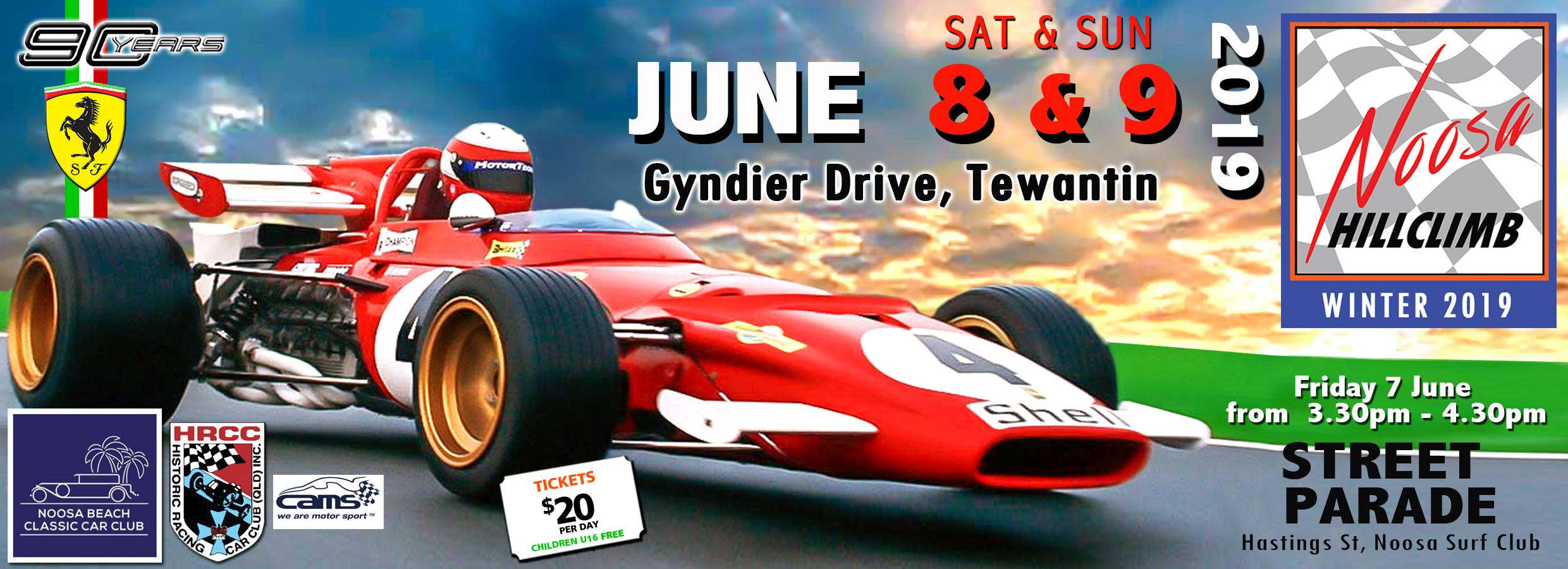 Noosa Beach Classic Car Club presents Noosa Hill Climb - Winter Challenge. Held on Gyndier Drive Tewantin and consists of a track with 14 corners winding through National Park. In addition to the Hillclimb, on Friday 7 June from 3.30pm - 4.30pm there will be a STREET PARADE in Hastings Street, and then the public will be able to have a closer look at some of the cars in the parking area next to the Noosa Surf Club. See website for all info https://www.noosacarclub.com.au