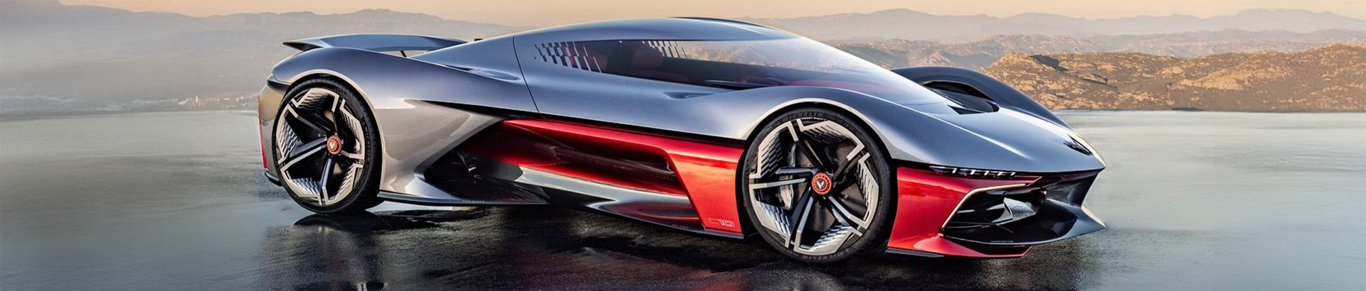 The racing ethos behind the design continues with dramatic exterior proportions – wide rear wheels, a narrow, tapered cabin and a narrow cockpit. Wheels are 21-inch at the front and 22-inch at the rear, with haunches that echo C3 Corvettes from the 1970s. Enhancing the rear wheel size is a ‘tunnelled’ treatment of the back end as part of an extreme aerodynamic package that includes a massive rear diffuser and active rear spoiler that eliminates the need for a traditional rear wing to generate downforce.